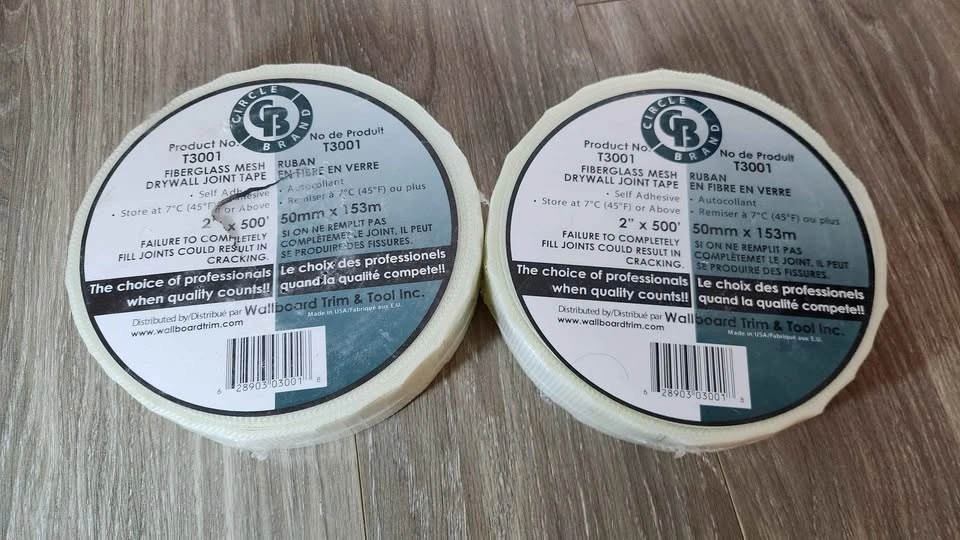 Never opened, brand new sealed package. 2 packs for $15. Pick up near Square One. Cash only. Also available: Fiberglass drywall tape, Drywall tape, Sil gasket foam