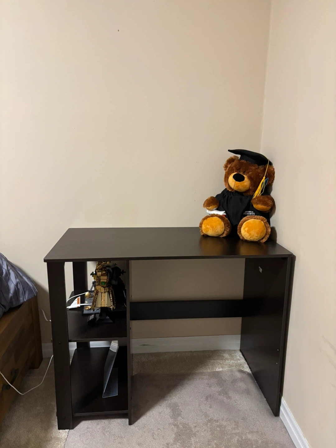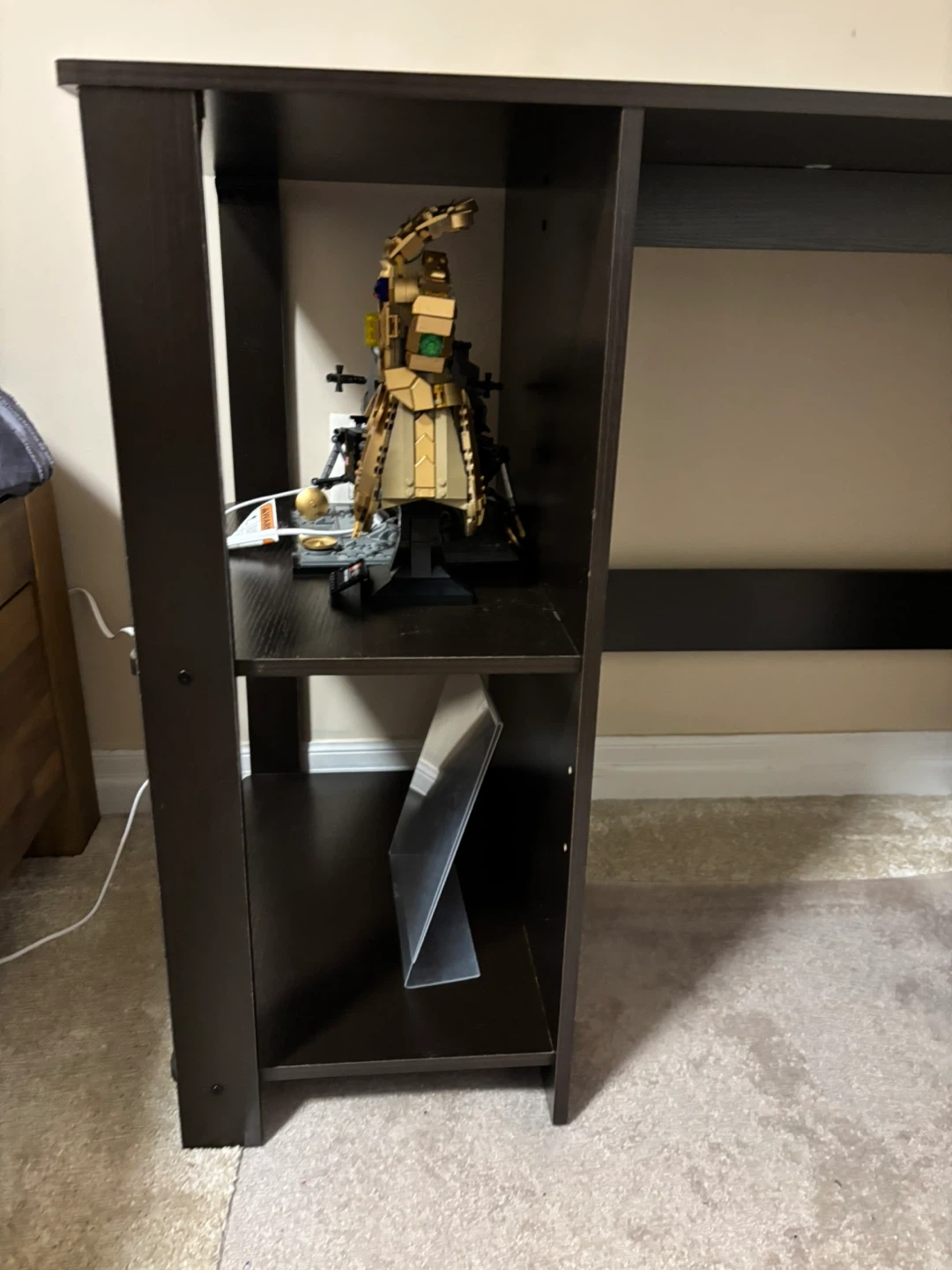 Selling a dark brown/black desk with built-in shelves! It's in great shape and perfect for a home office or student space. it’s barely been used, been sitting in the room for a few months.