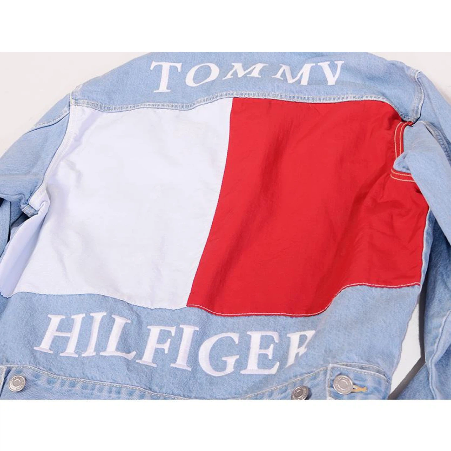 TOMMY HILFIGER UNISEX OVERSIZED DENIM JACKET ARCHIVE FLAG SZ L