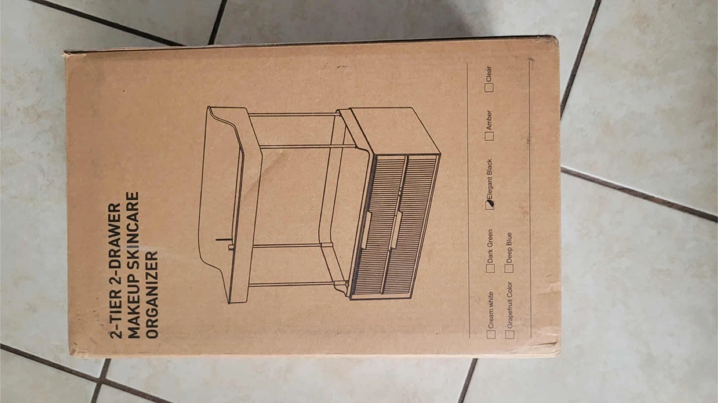 Selling a 2-tier organizer perfect for makeup and skincare! It features two drawers for extra storage and is in an elegant black colour. The dimensions are approximately 12.44 inches wide, 7.91 inches deep, and 15.4 inches high. Comes with the original box!