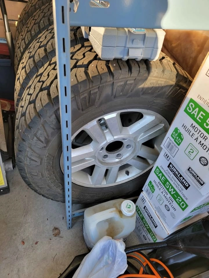 Nearly Brand new winter tires. (Still have the new tire nibs on them) 275/65R18 10ply. I sold my old truck and bought a new one and it has 20" tires. The are already mounted on O.E.M. Ford factory aluminum rims. (Fitment 2012 to present with 6-bolt pattern)