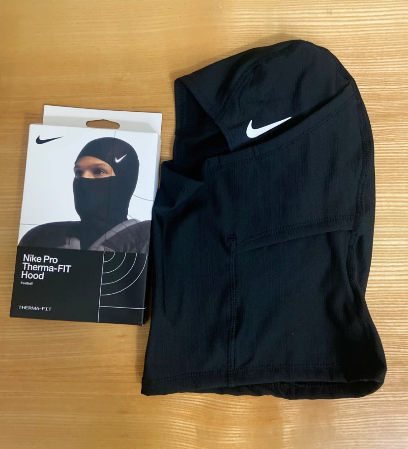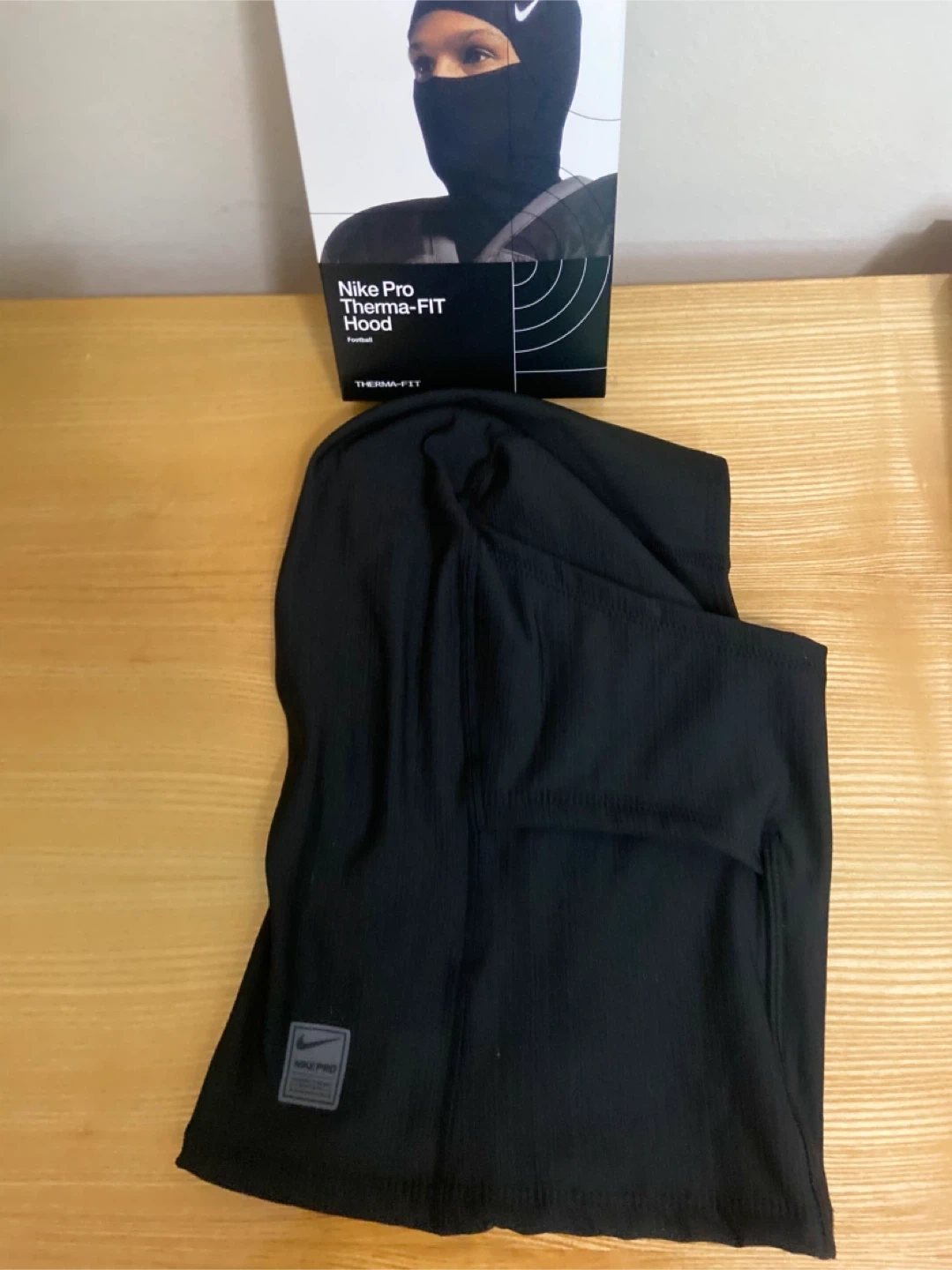 Selling a Nike Pro Therma-FIT Hood in black. It's in great condition and comes with the original box. This hood is designed with Therma-FIT technology to help keep you warm and comfortable during colder weather activities. Perfect for football or any outdoor sport!