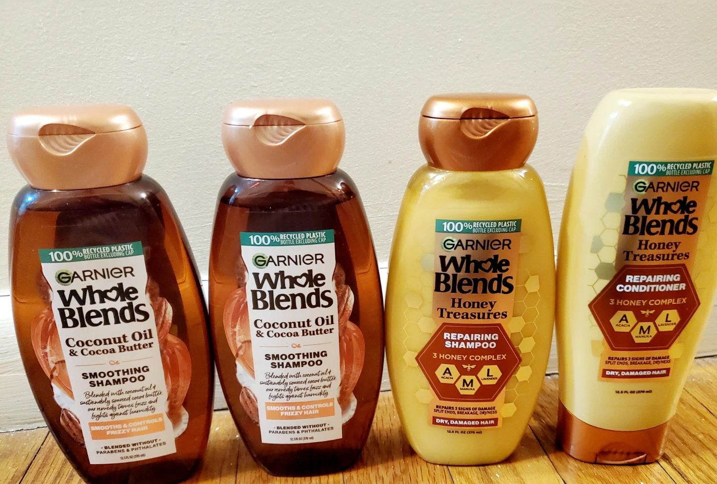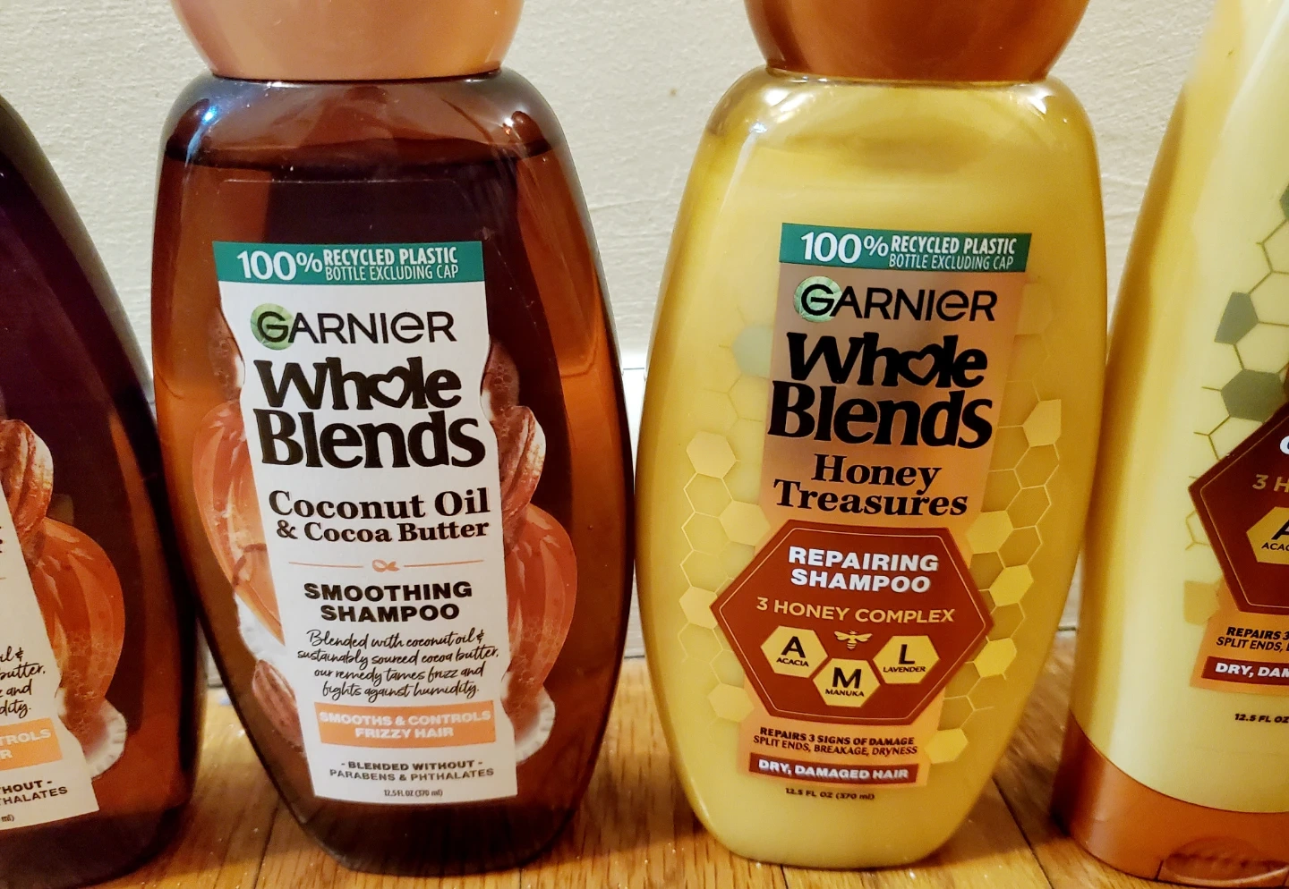 I'm selling Garnier Whole Blends shampoo! One is Coconut Oil & Cocoa Butter Smoothing Shampoo and the other is Honey Treasures Repairing Shampoo. Both are 12.5 fl oz (370 ml). They're blended without parabens and phthalates