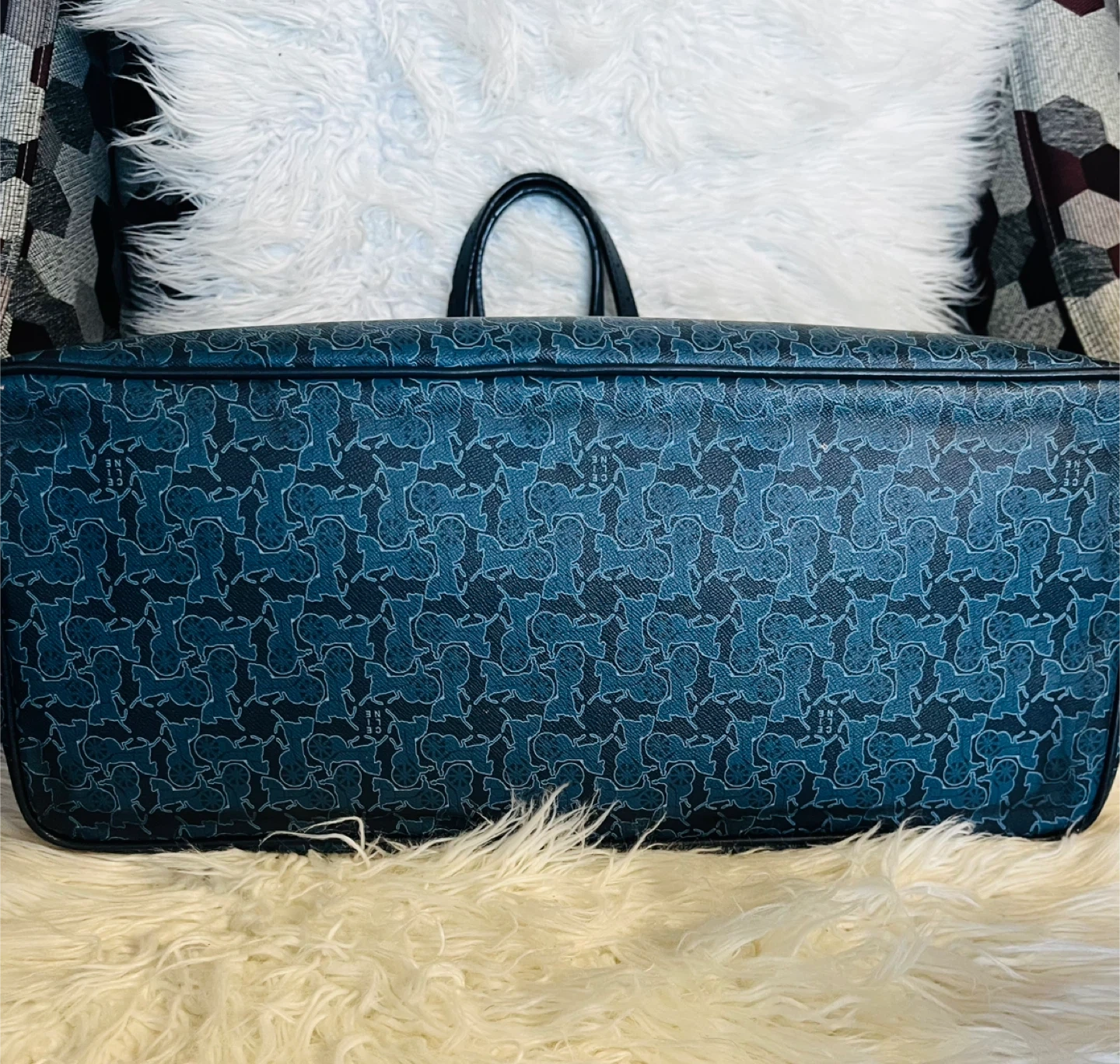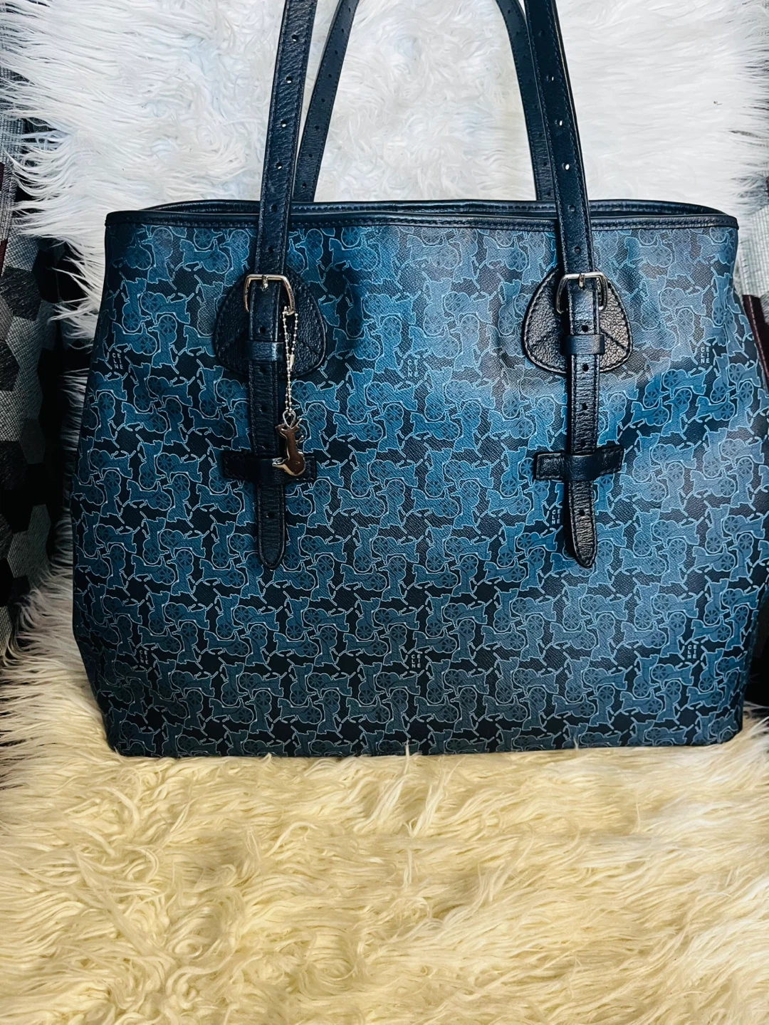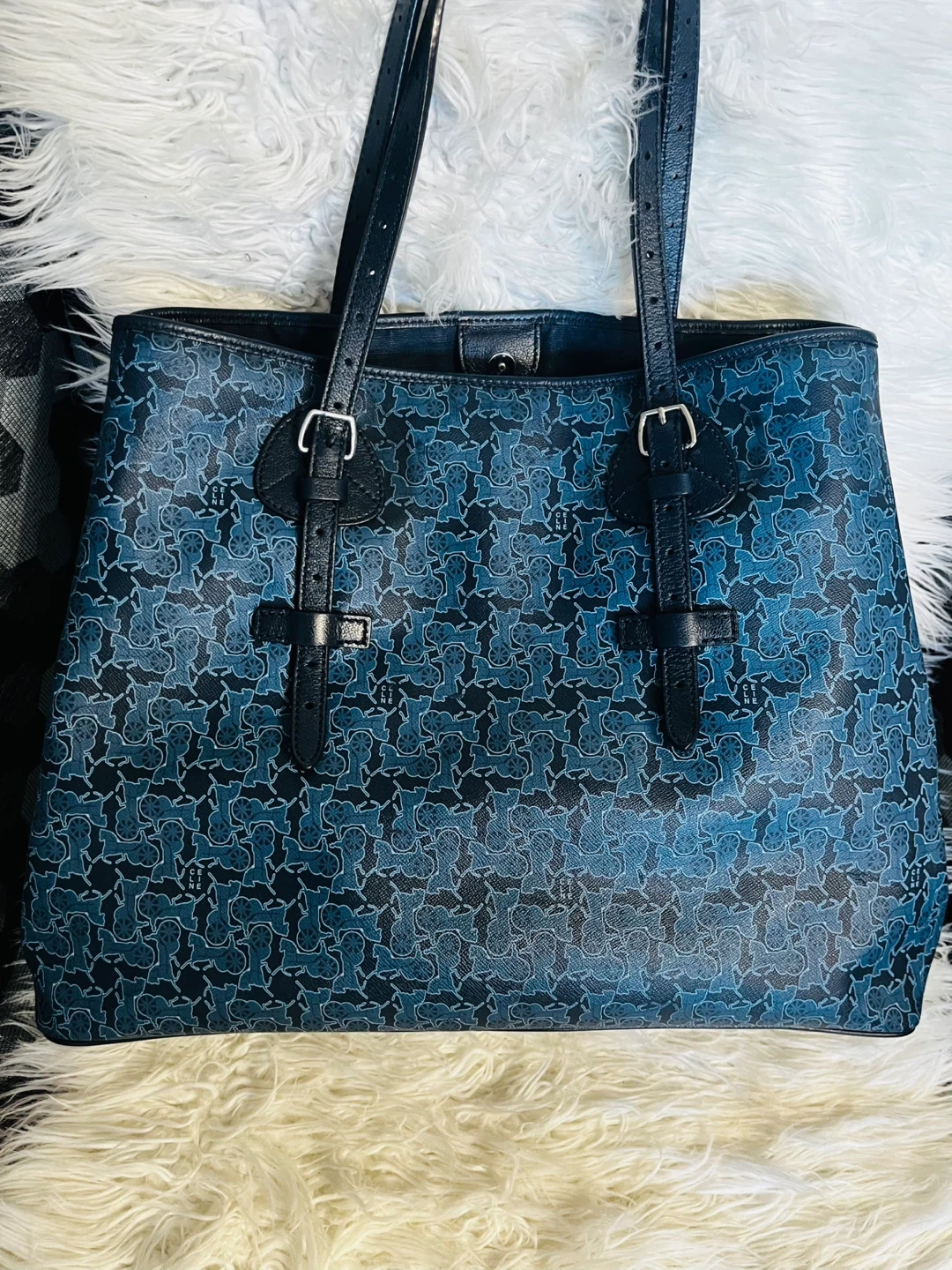Selling a Celine tote bag in a beautiful blue colour! It features a unique pattern and classic design. Great for everyday use or as a stylish accessory