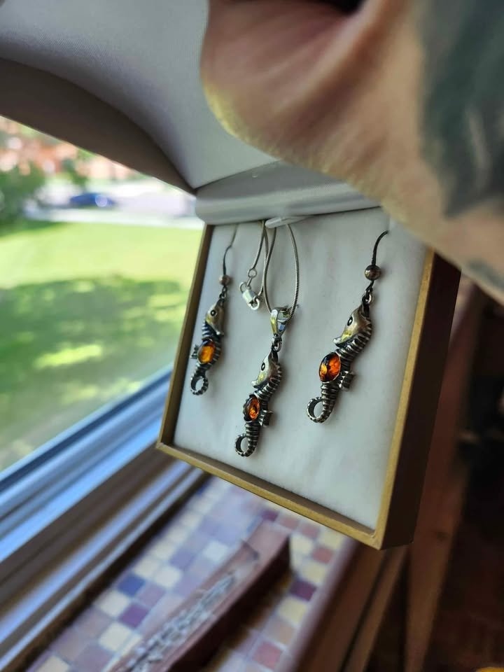 1 / 31 / 3Buy & SellSterling Silver Seahorse Earrings & Necklace Set - 16 inchesSterling Silver Seahorse Earrings & Necklace Set - 16 inches$20Beautiful Sterling silver Seahorse earrings & Necklace Set with Amber stones PU ST VITALWHERE TO MEETCheck LocationView MapSELLERverifiedNessGrant Park762 reviews0 chats·1 favorites·22 viewsSEND CHAT TO SELLERHi Ness! I’m interested in your listing.Hi Ness! I’m interested in your listing.Get the Karrot app to chatSign In to chat