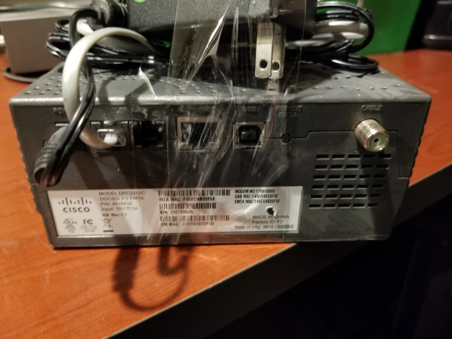 Selling a Cisco DPC2203C DOCSIS 2.0 EMTA modem. It includes the power adapter and all the necessary cables to get you connected. Great for basic internet needs!