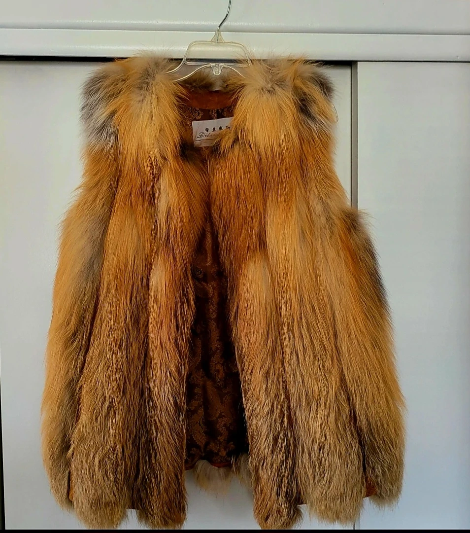Selling a Dilangeiuse real fox vest. It features a beautiful paisley pattern on the inside lining and is in great condition!