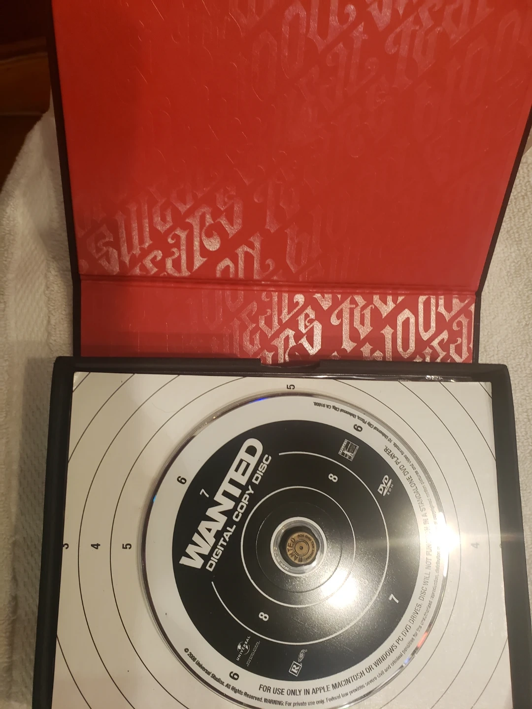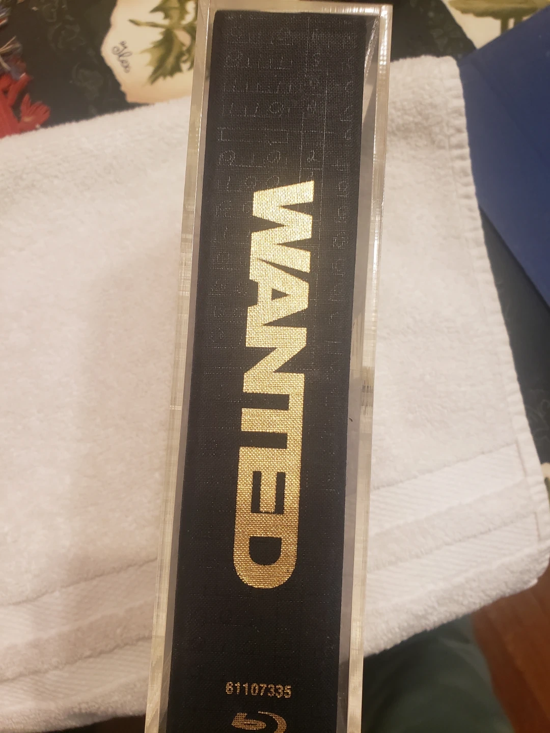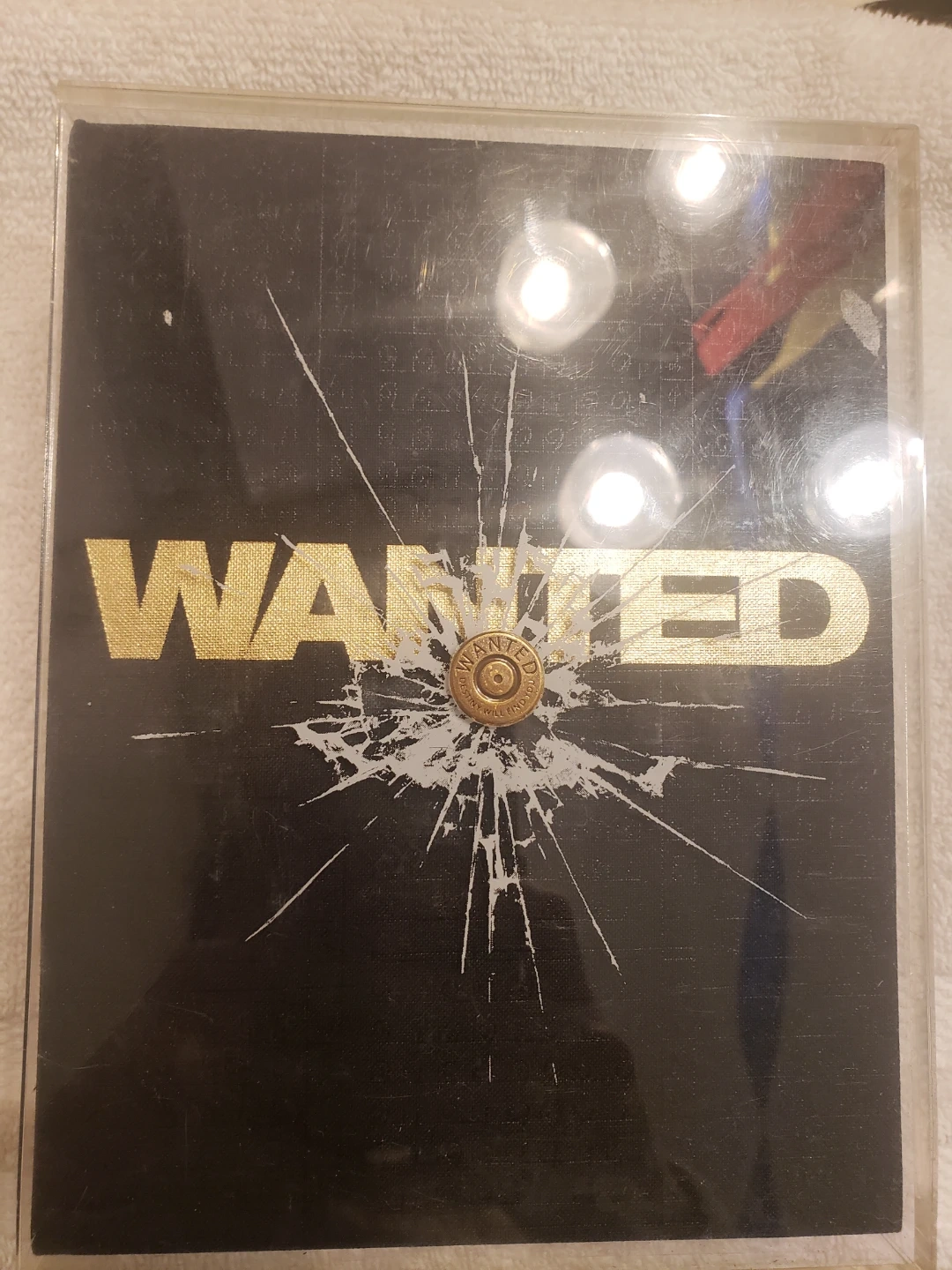 Selling a Blu-ray disc of the movie Wanted. It comes with the digital copy disc. The case has a unique design with a bullet hole detail. Collectprs bulletproof edition-rare metal case w/disc.