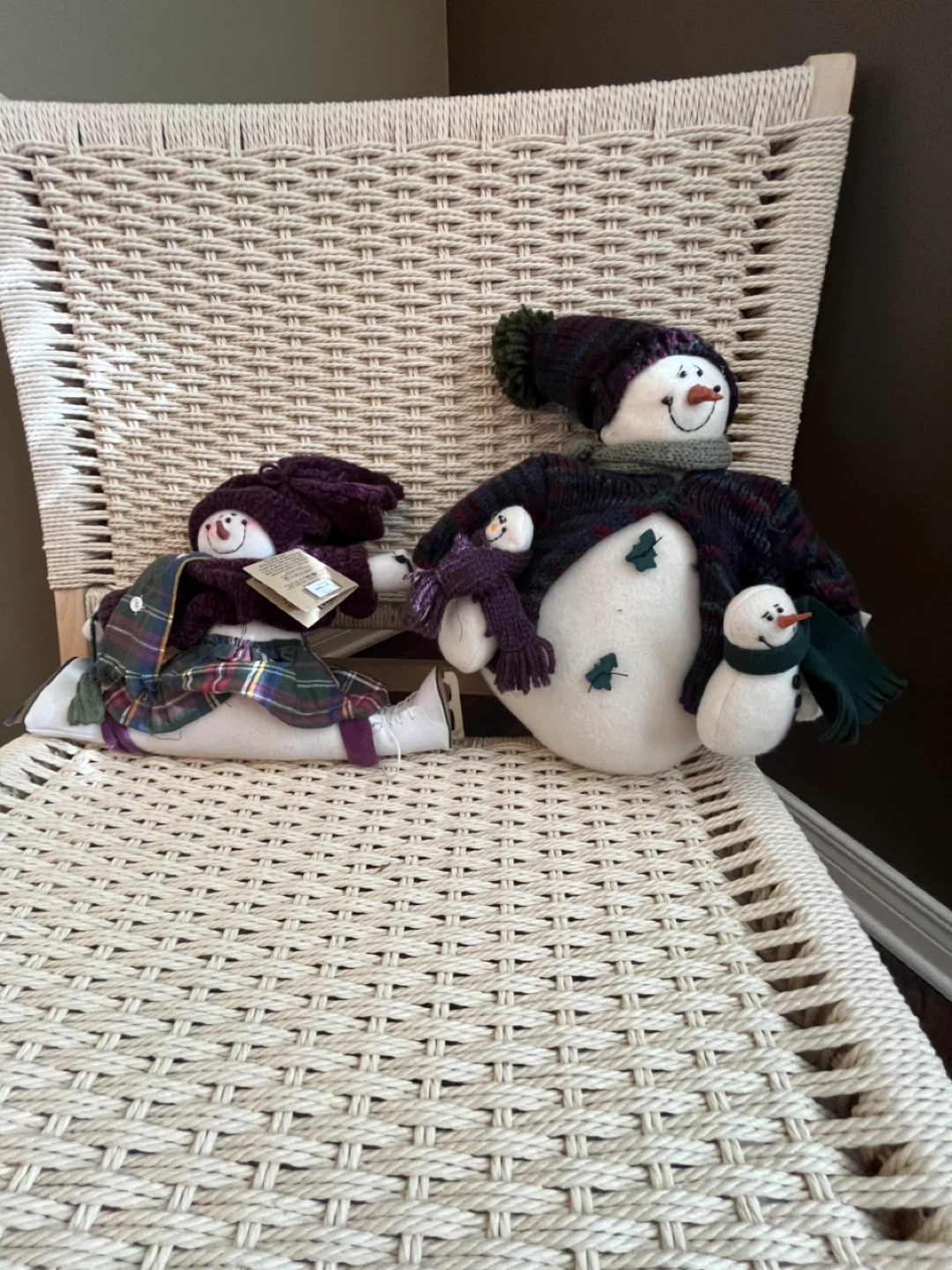 These adorable Hallmark Among Friends snowman figurines are ready to add some festive cheer to your home! They are in great condition and would make a lovely addition to any holiday display. Three snowmen and one Xmas stone hanging plaque. Pet and smoke free home. Pick up in Stittsville.