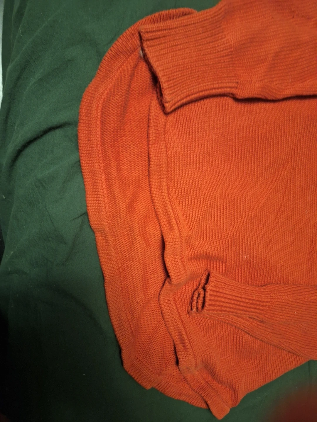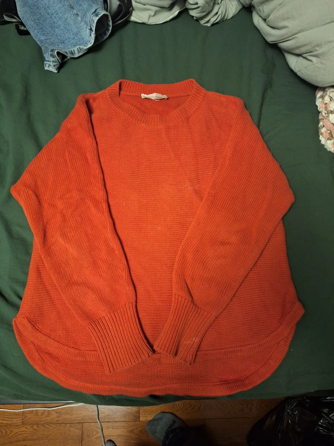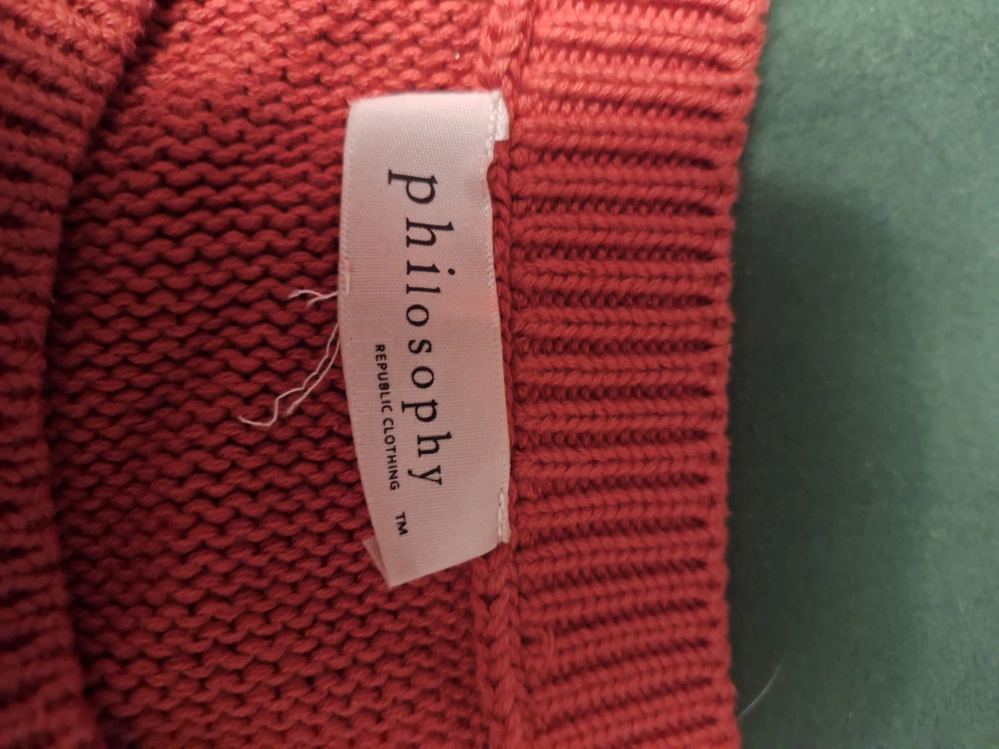 Here's a cozy orange knit sweater from Philosophy Republic Clothing! It's in great shape and ready to keep you warm. Perfect for layering or wearing on its own