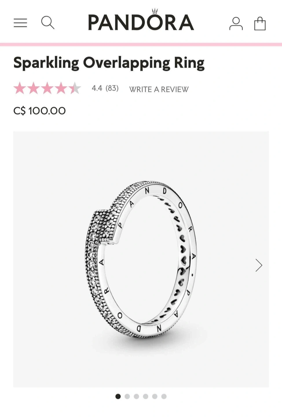 Selling a Pandora Sparkling Overlapping Ring. It's a beautiful piece that adds a touch of sparkle to any outfit. Originally priced at C$100.00