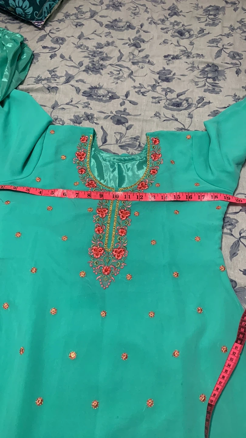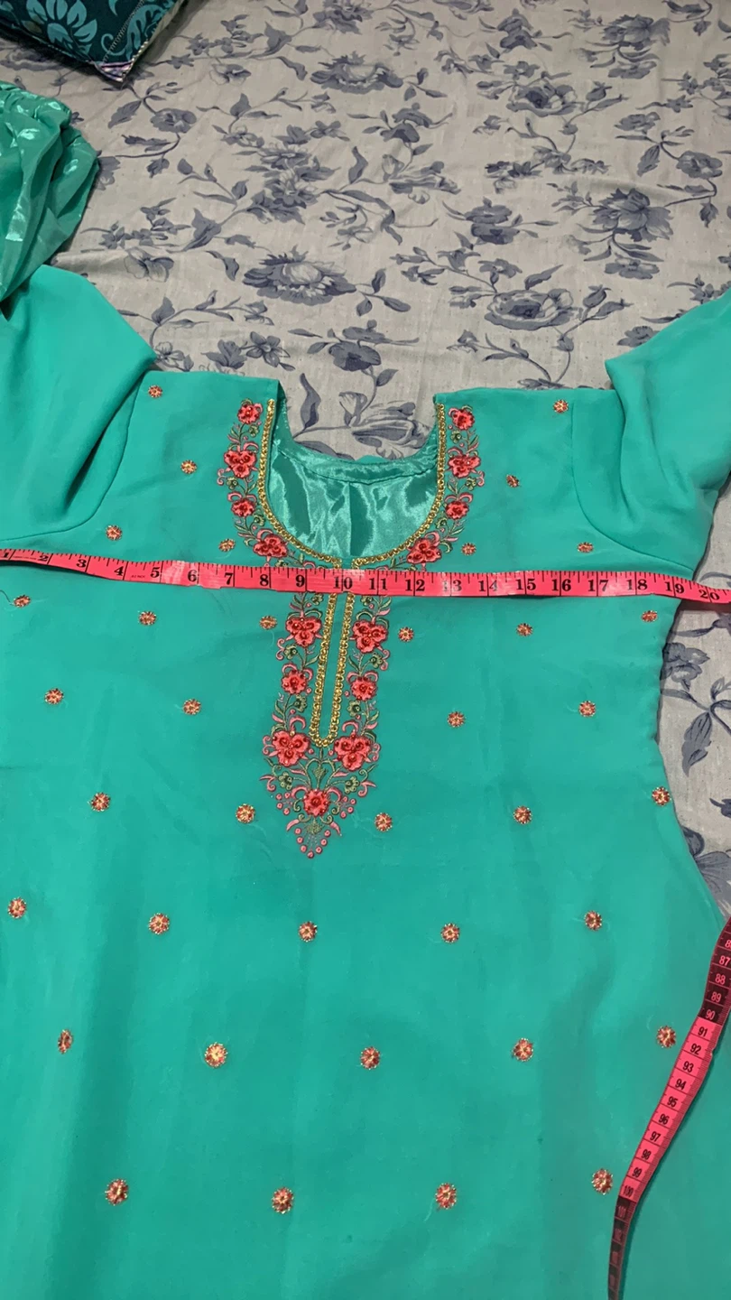 Beautiful teal salwar kameez suit! The suit has a lovely embroidered design. Perfect for a special occasion or everyday wear