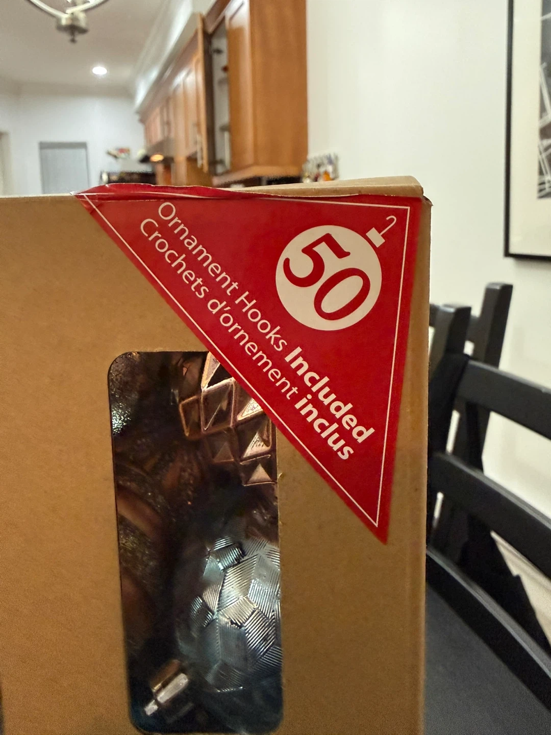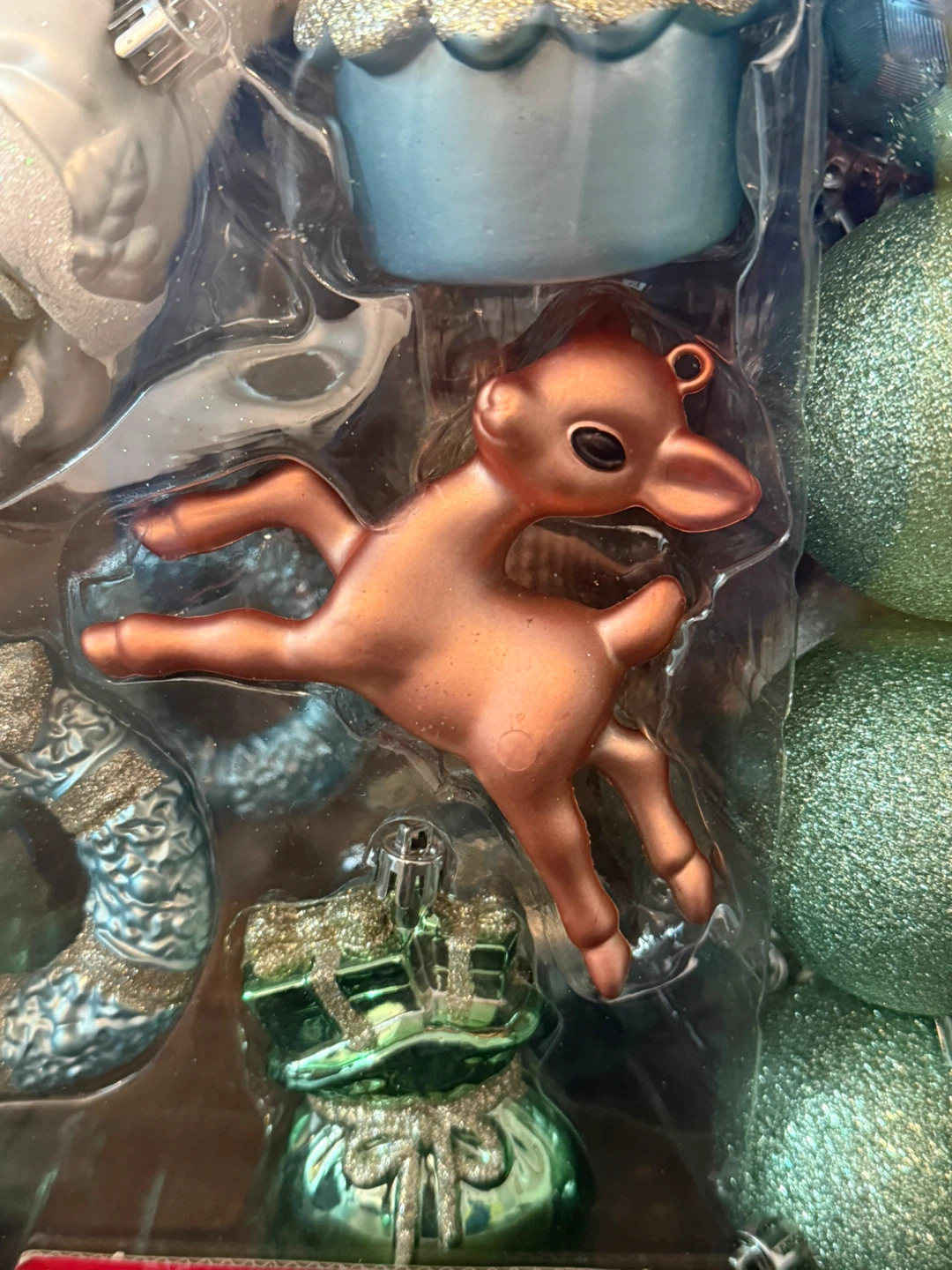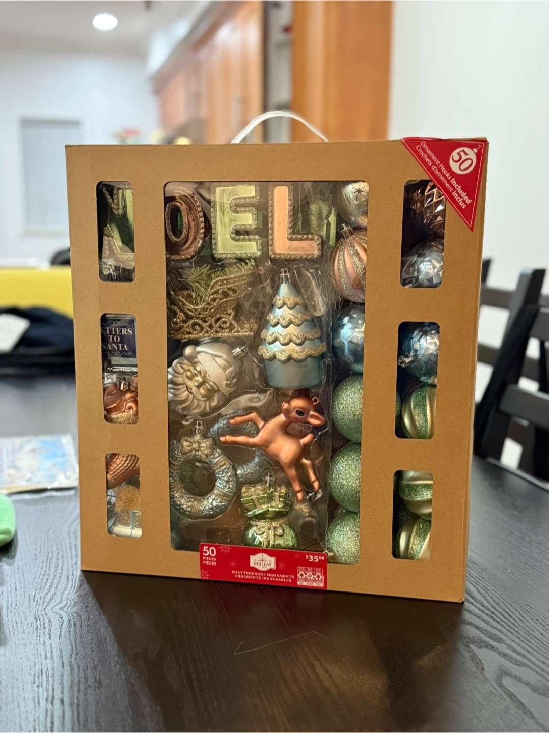 Selling a set of 50 Holiday Time shatterproof ornaments! They come in a variety of shapes and colours, including classic balls, a reindeer, a Christmas tree, and even the letters to spell out "NOEL". The box includes ornament hooks, so you'll have everything you need to decorate your tree! Originally priced at $35.98, only used one Xmas. Perfect for decorating your Christmas tree!