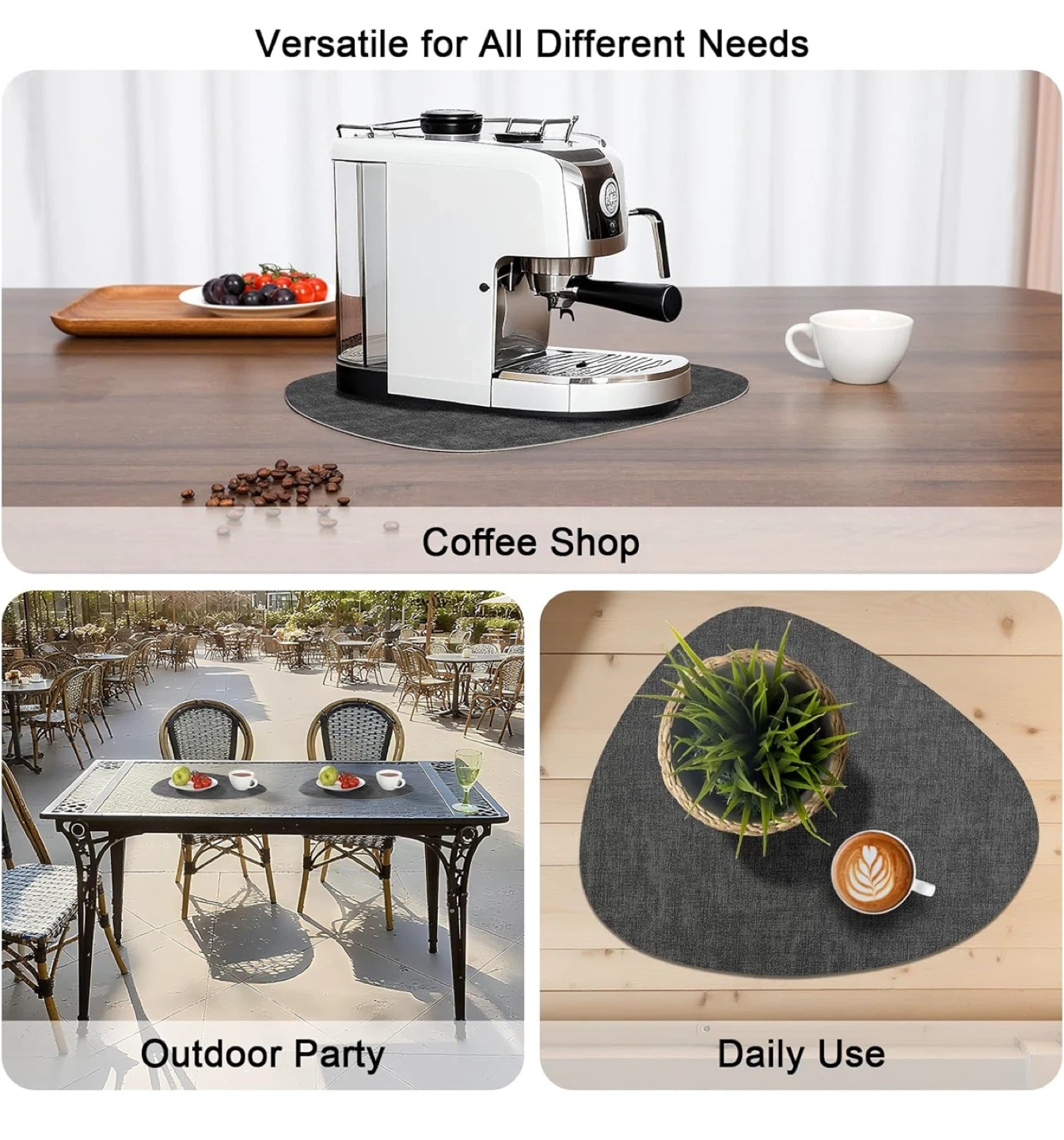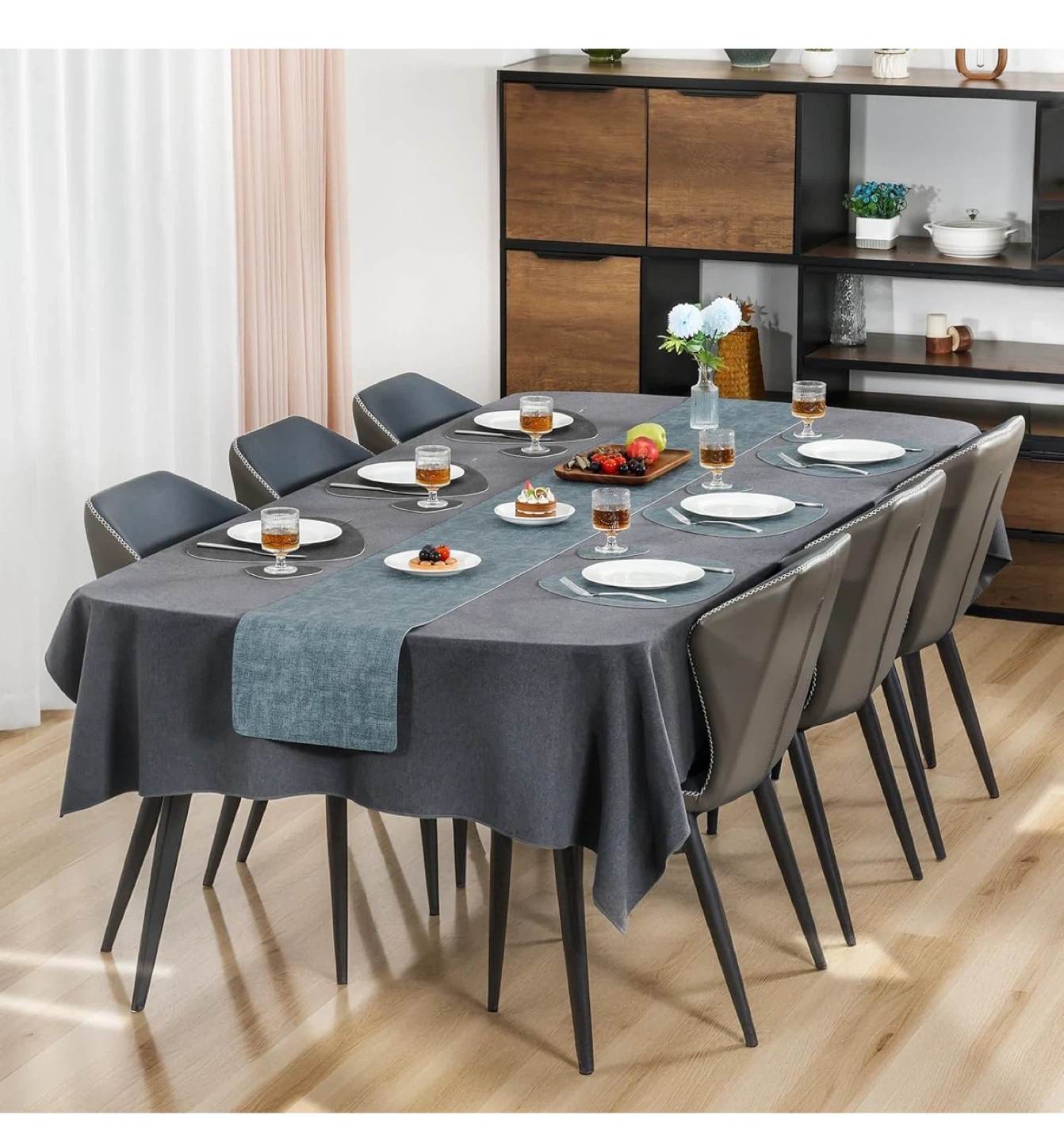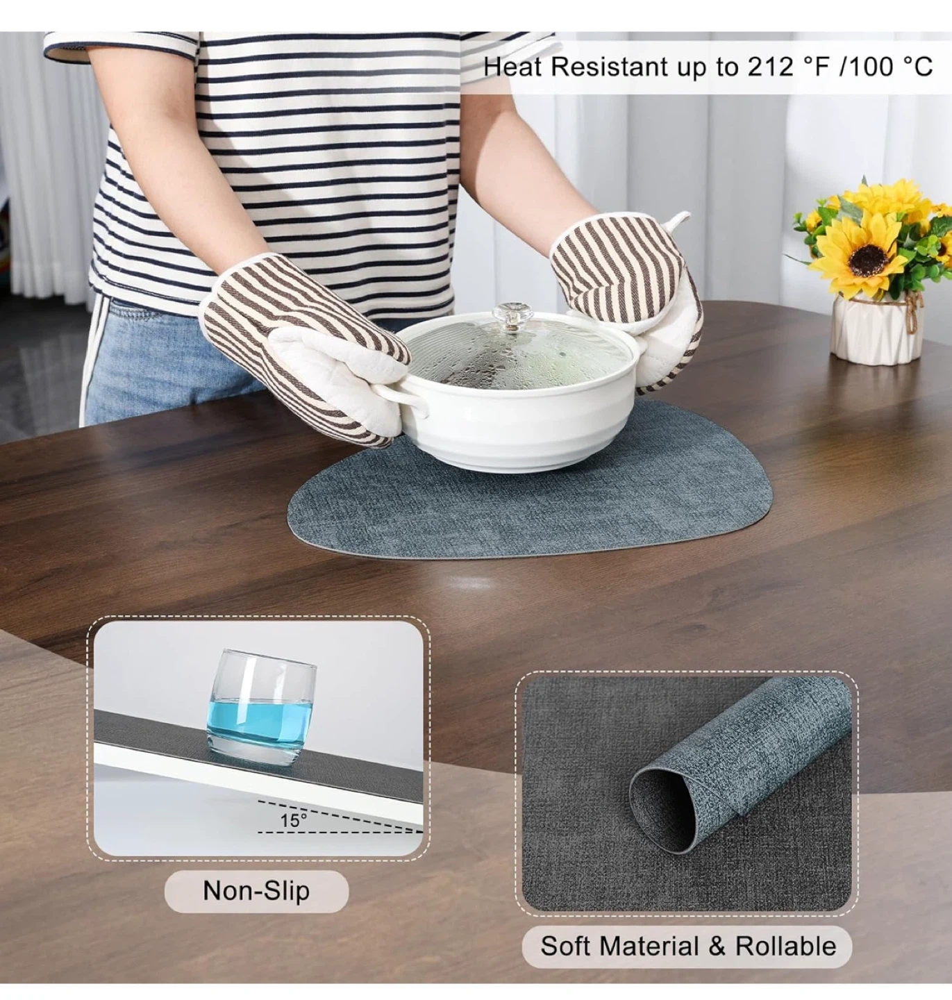 I'm offering a set of six brand new placemats, perfect for adding a touch of elegance to your dining experience while protecting your table. These placemats are washable and reversible, offering both style and practicality. The dual-sided design features a durable faux leather with a stylish linen texture in two different colours, allowing you to switch up your table setting effortlessly. Each placemat measures approximately 33 cm x 40 cm (13 inches x 15.8 inches). If you're seeing this ad, the placemats are still available. Get them before they're gone!