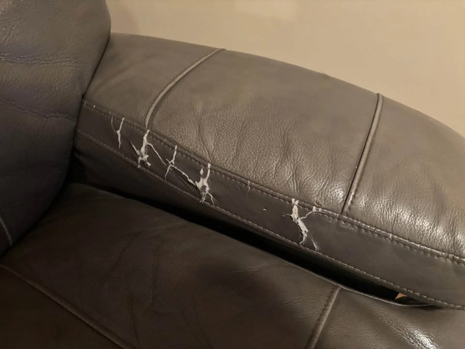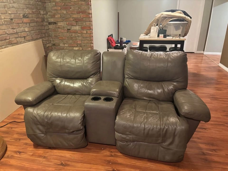 Comfortable electric reclining leather (or leather-like, I’m unsure) couches! Both have wear and tear as pictured. There is a 3-seater and a 2-seater with cup holders and console storage. Both recline when plugged in and are very comfortable. Need to be carried out of the basement (I can try and help but it would probably be best to bring two or more strong people).