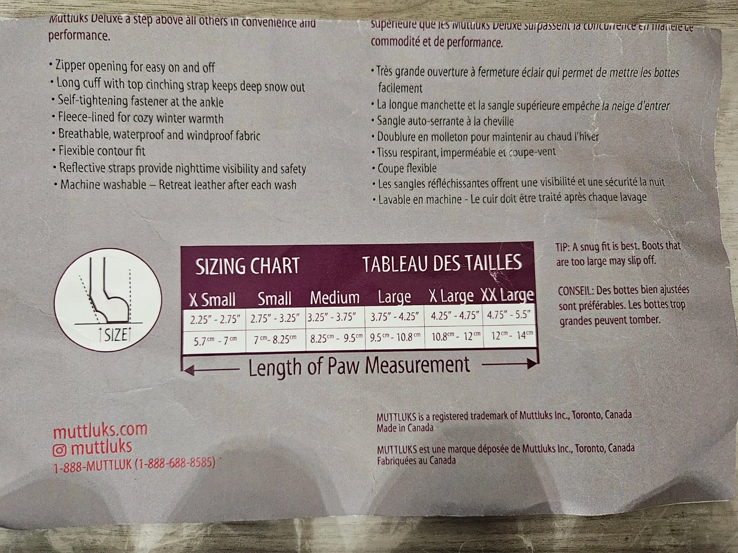 Muttluks Dog Winter Boots - Fleece Lined - Size S