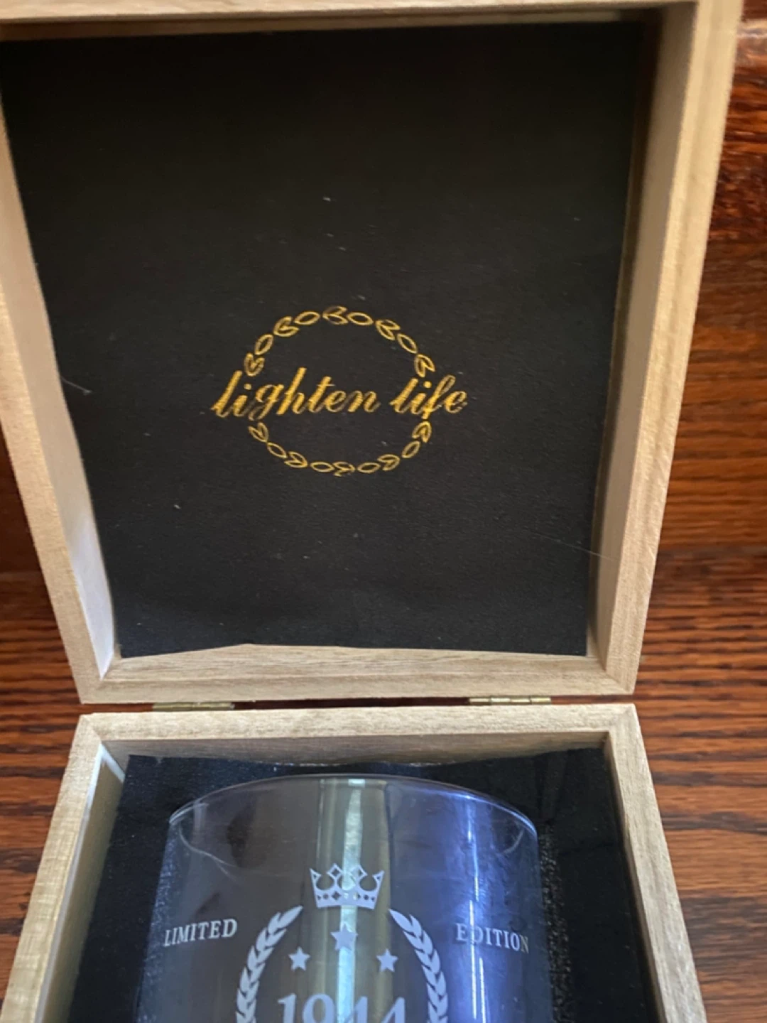 Selling a Lighten Life whiskey glass, a vintage 1944 limited edition - Aged to Perfection. It comes in its original box, perfect for gifting or adding to your collection! The glass is in excellent condition and has a lovely design.