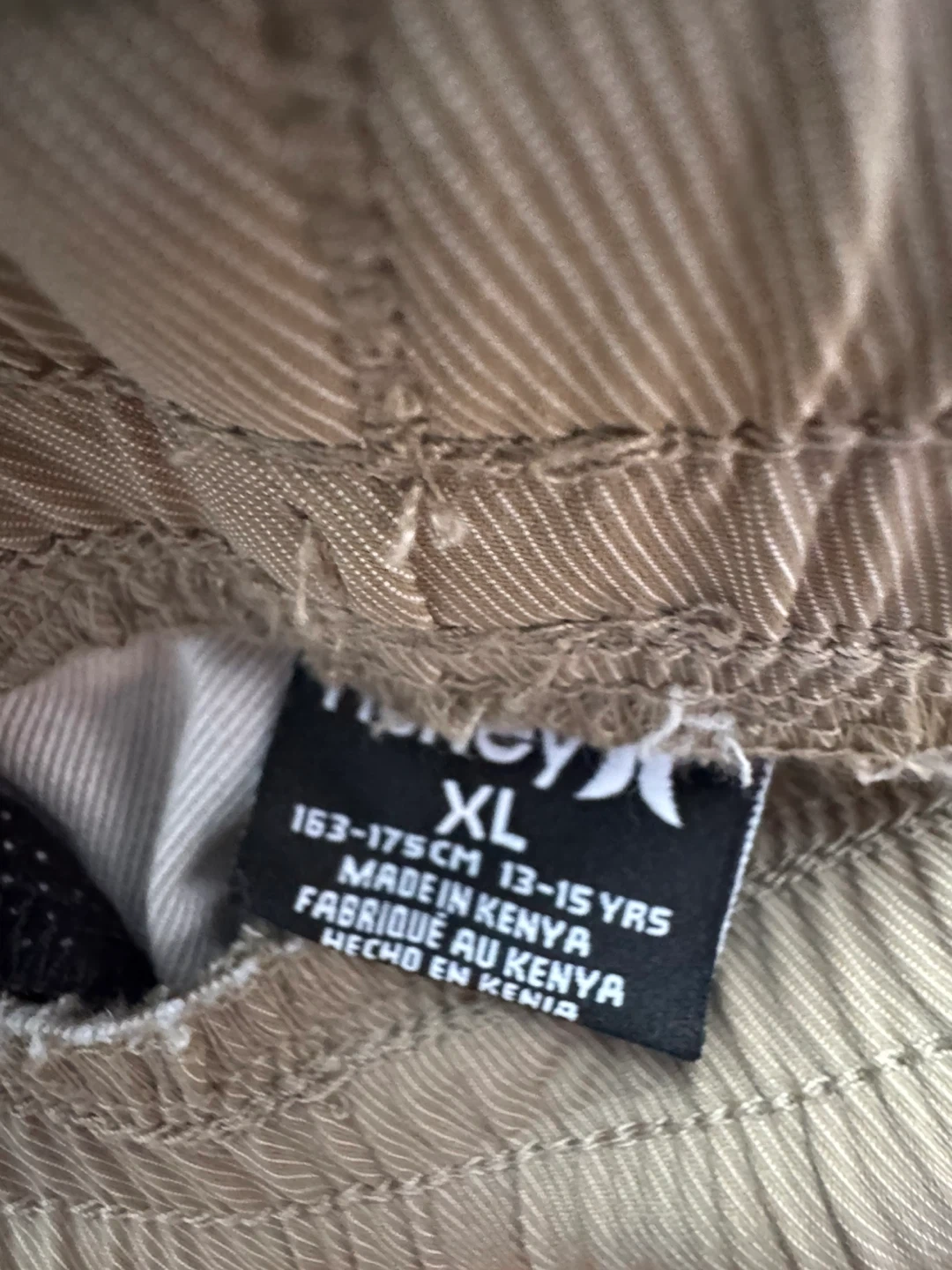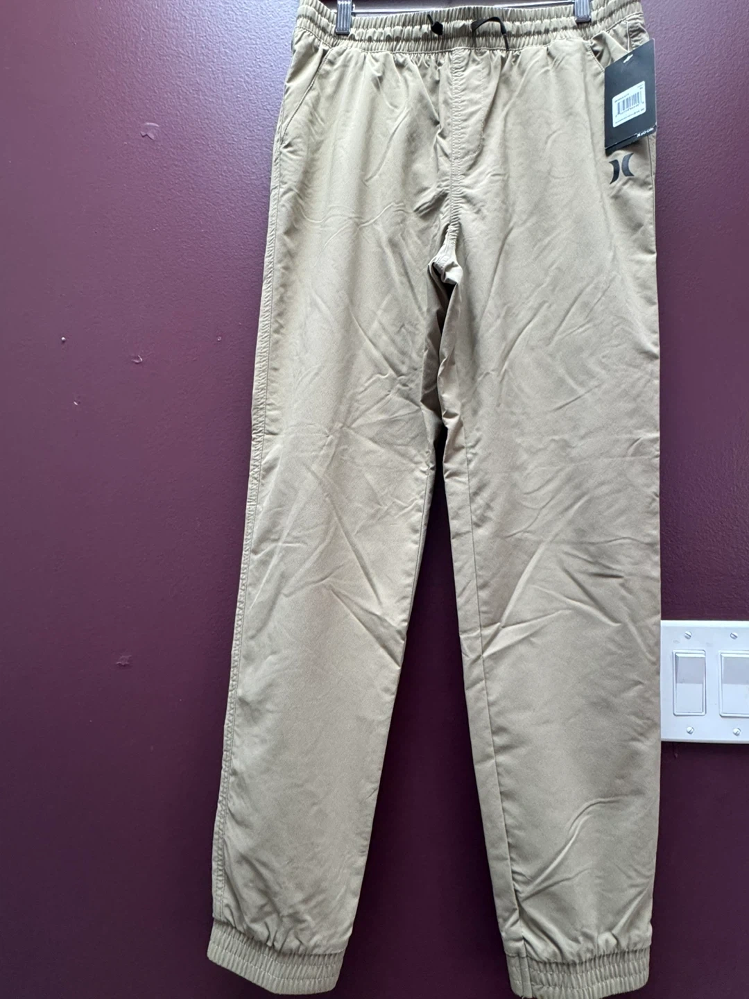These are a new pair of Hurley jogger pants in youth /kids size XL. They are a tan color and have a suggested retail price of $44. They feature an elastic waistband and drawstring, perfect for casual wear!