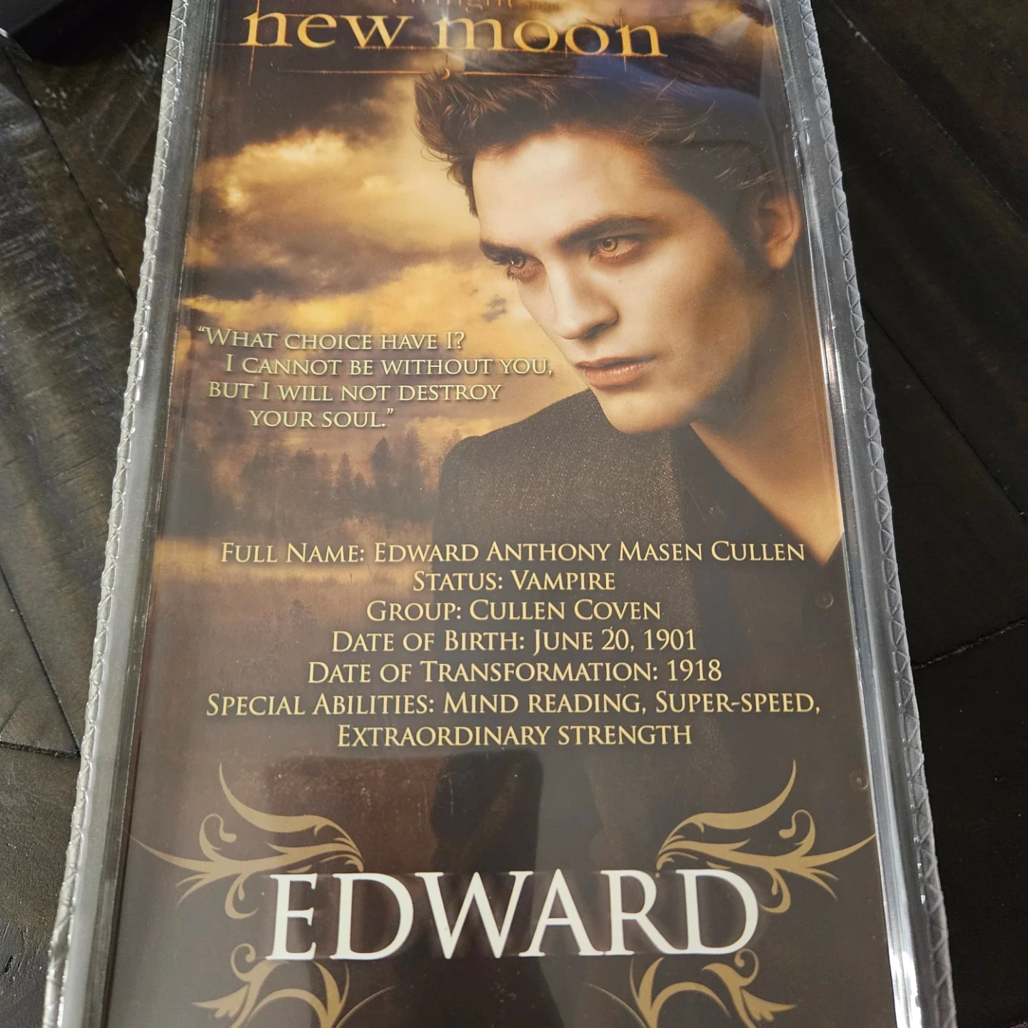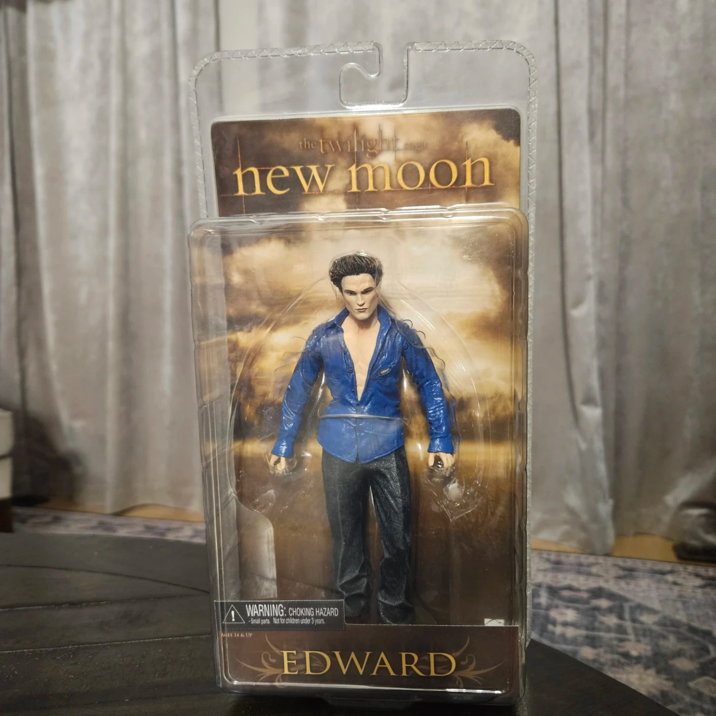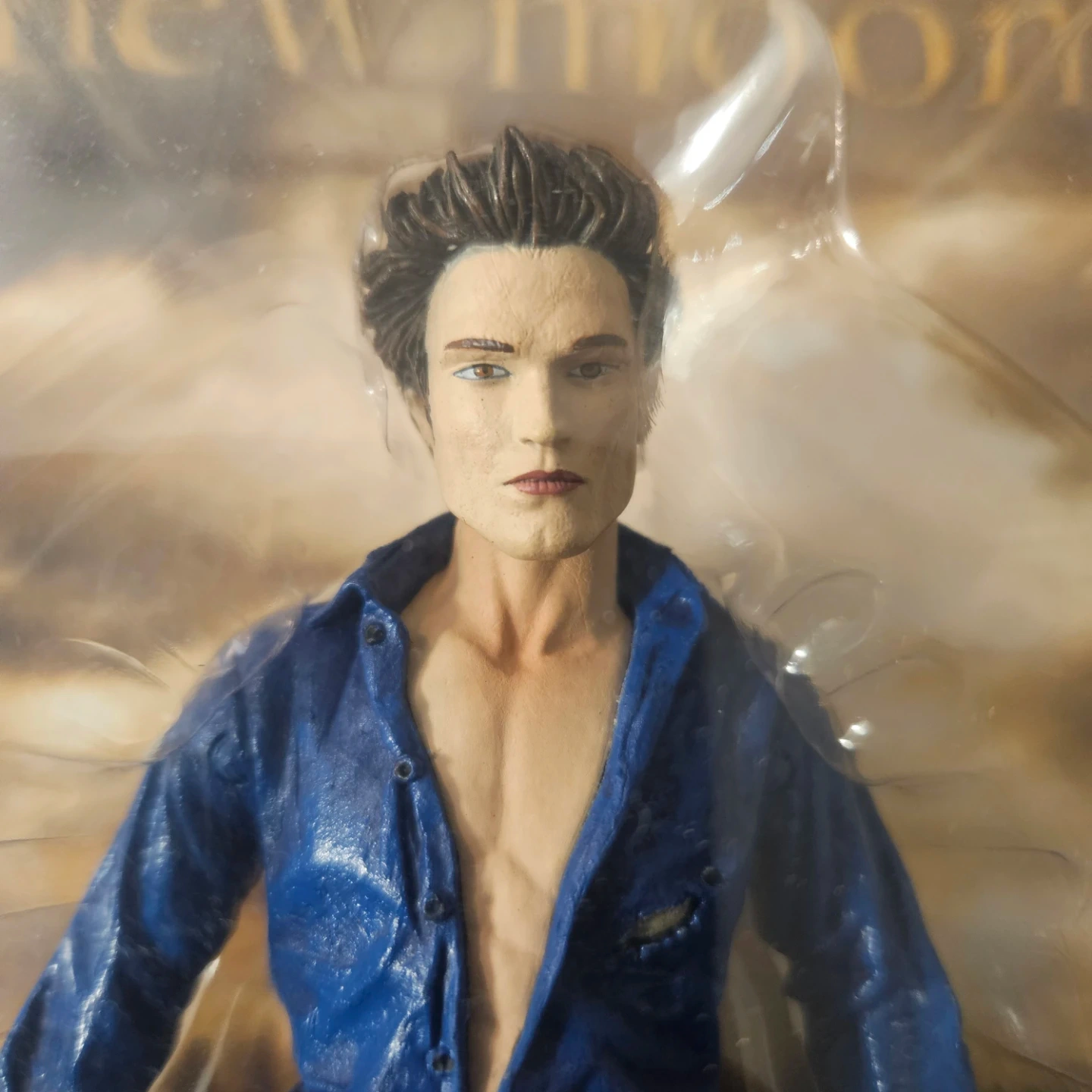 Twilight Saga collectors! This Edward Cullen - New Moon action figure is not used and still sealed in original packaging. Features Edward in his iconic blue shirt, with detailed sculpting and screen-accurate design.