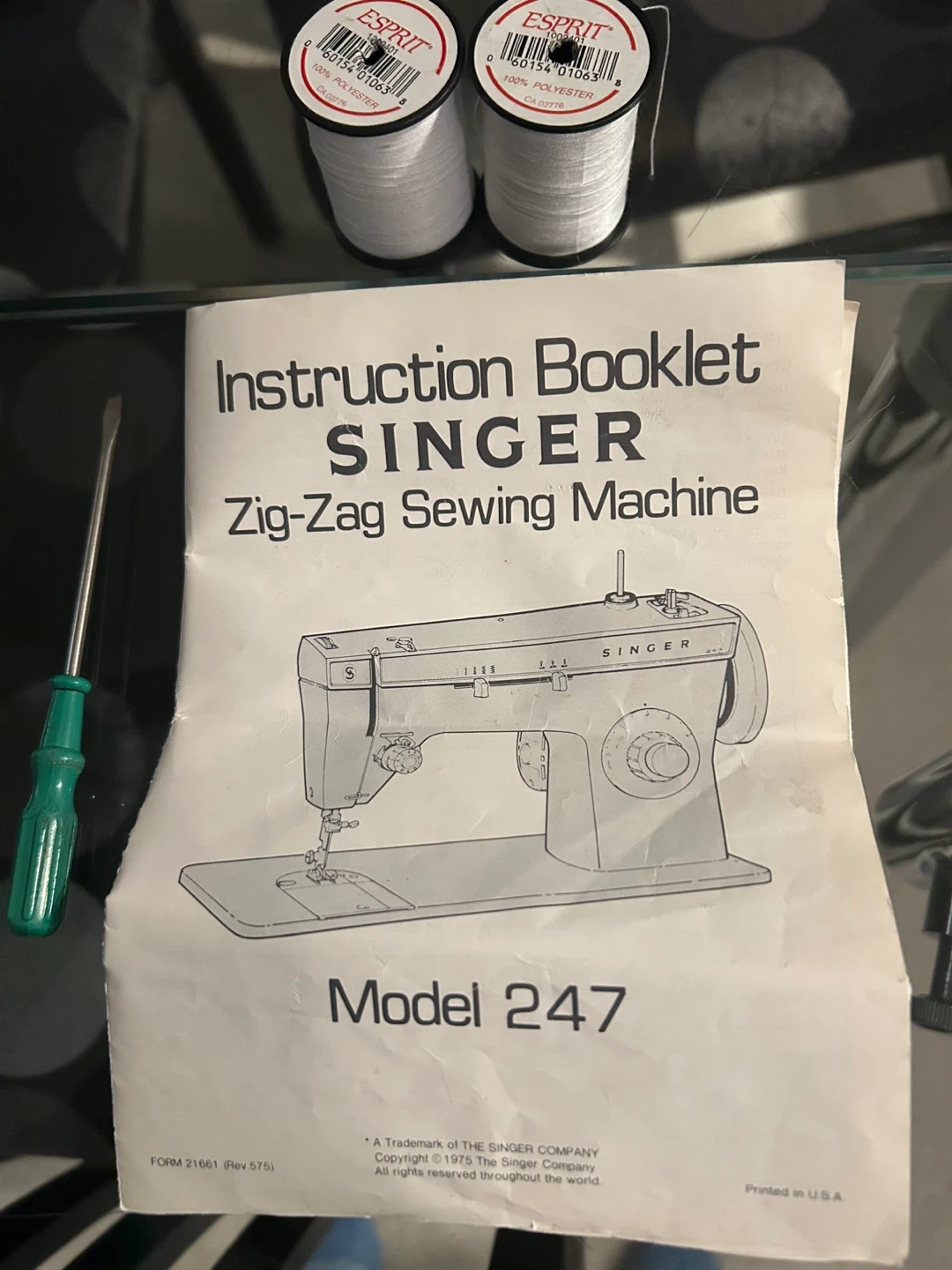Selling a Singer 247 zig-zag sewing machine! It comes with its original instruction booklet, and a carrying case.