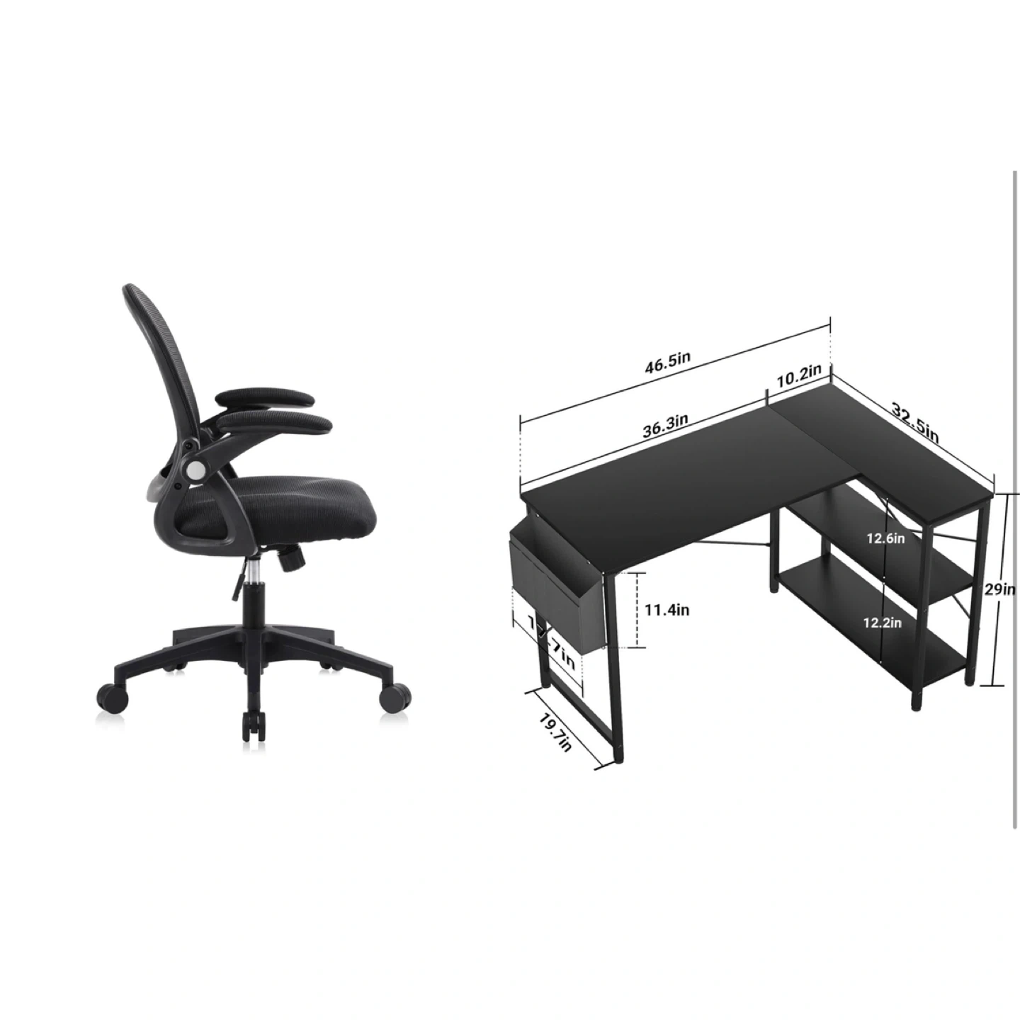 Selling a brand new office setup bundle – includes a modern L-shaped computer desk AND a breathable mesh office chair with flip-up arms. Perfect for your home office, bedroom, or gaming space.