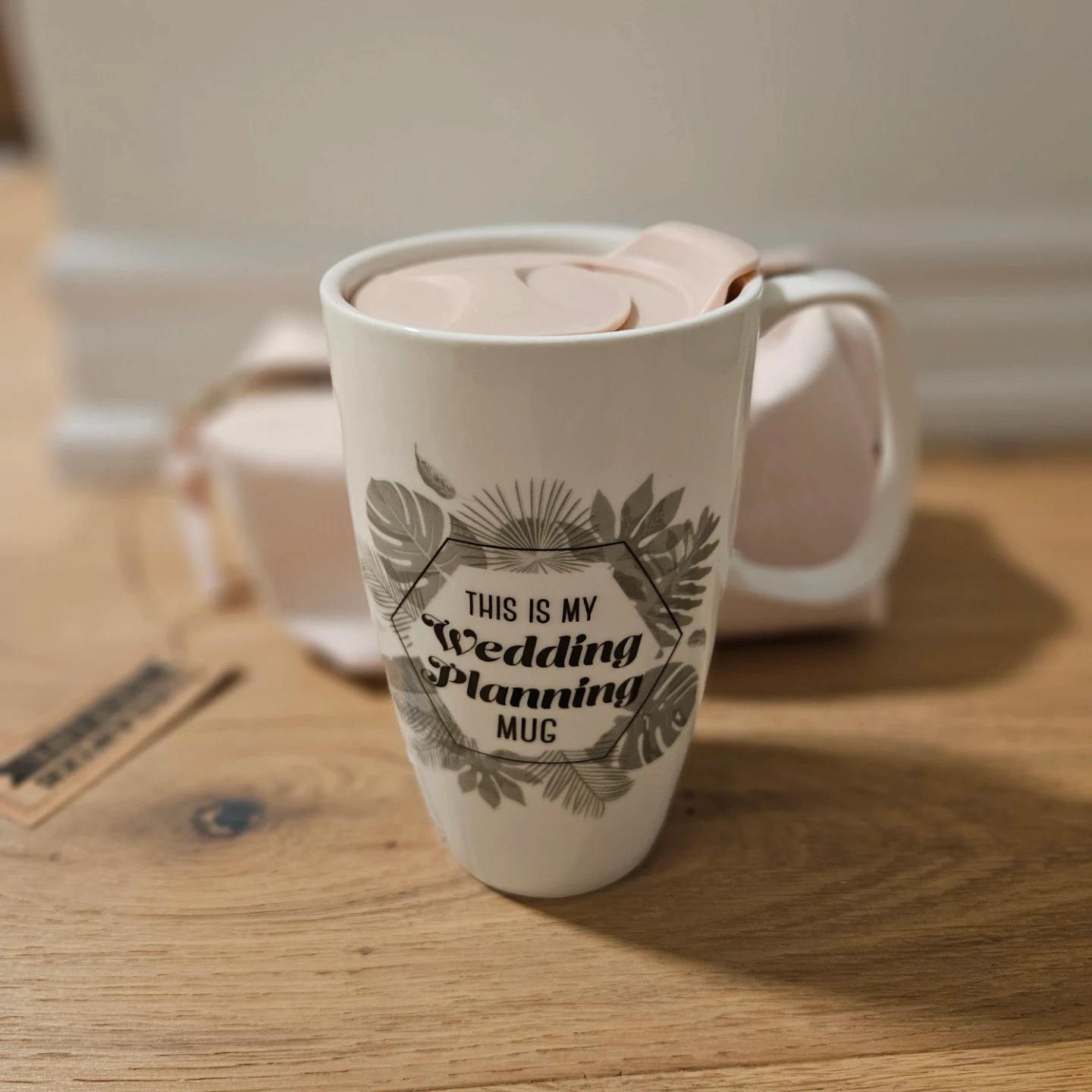 Two mugs available. Make wedding planning a little more special with this elegant cream Wedding Planning Mug, complete with a matching lid. Perfect for brides who want to stay organized while enjoying their favourite drink.