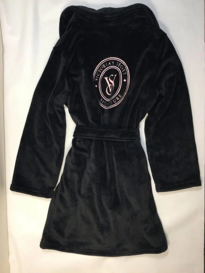 NEW * Victorias Secret Plush Robe Womens Small Black Lounge Cozy