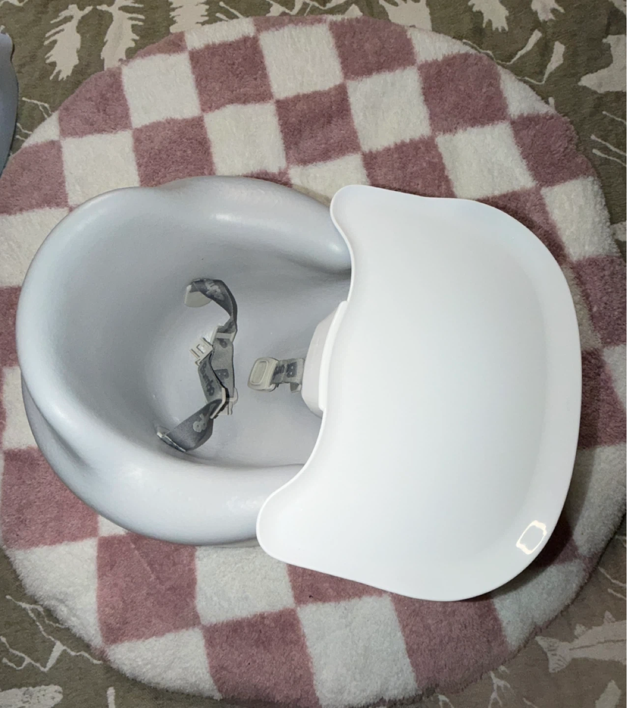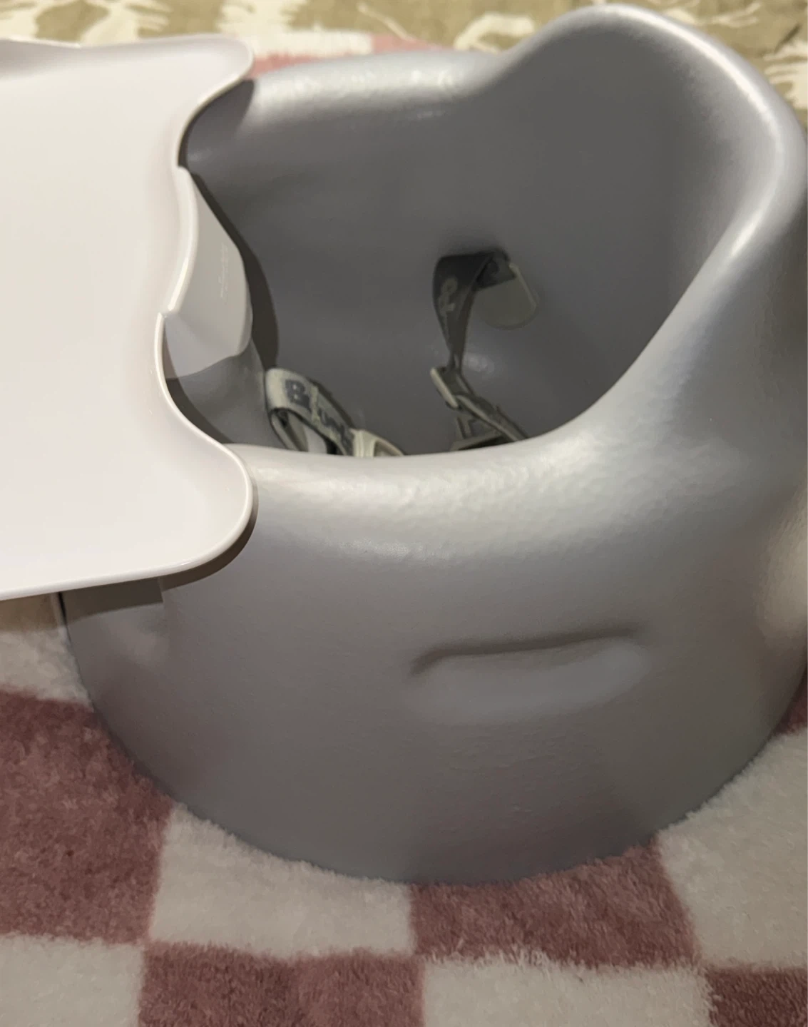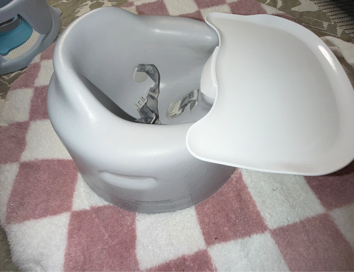 Selling a gently used Bumbo floor seat in grey, complete with a tray! This seat is perfect for little ones who are learning to sit up. It provides a supportive and comfortable place for them to play and explore. The tray is great for snacks or toys. The manufacturing date is 2024 February 07.