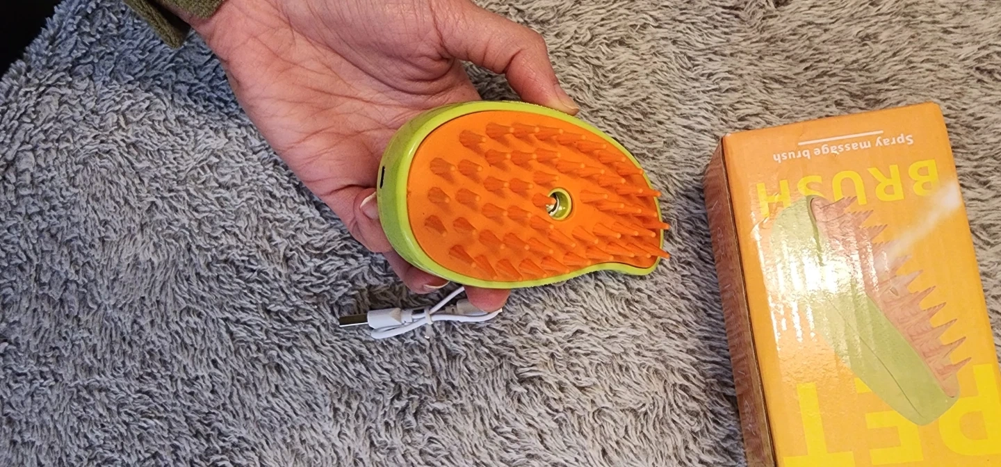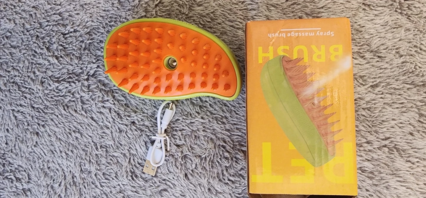 Selling a pet brush spray massage comb! It's green and comes with its original box. It is suitable for all pets. The package contains a spray massage comb and a charging line.