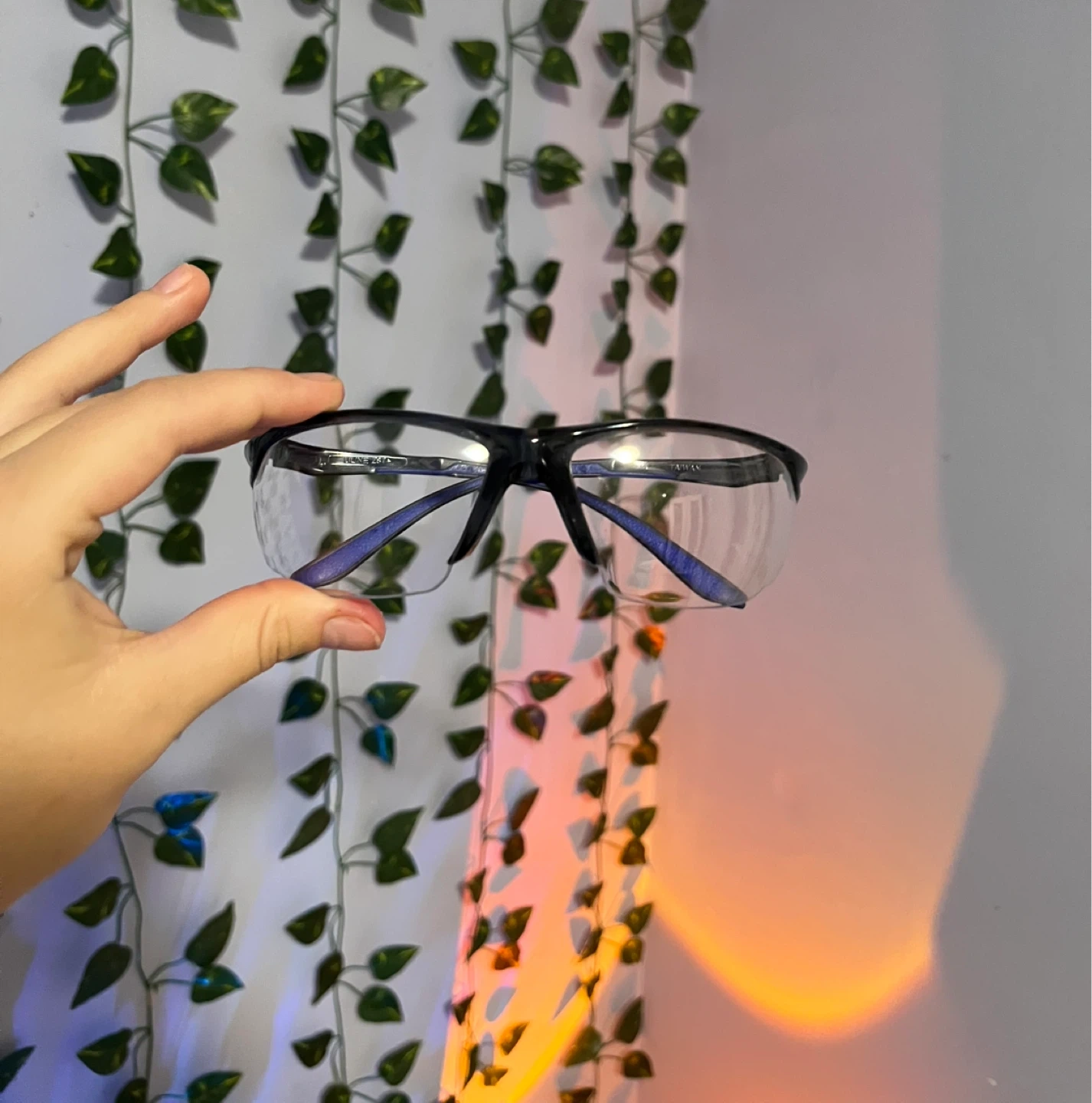 Selling a pair of safety glasses with blue accents. They look to be in great condition and ready for use!