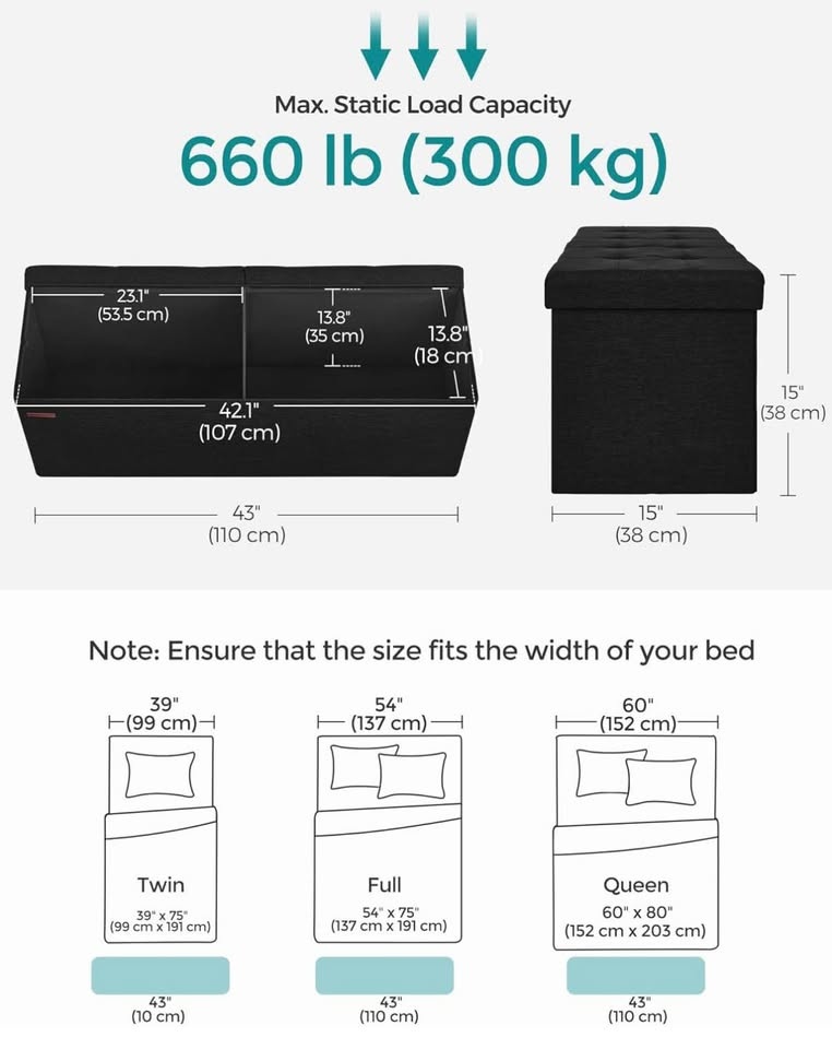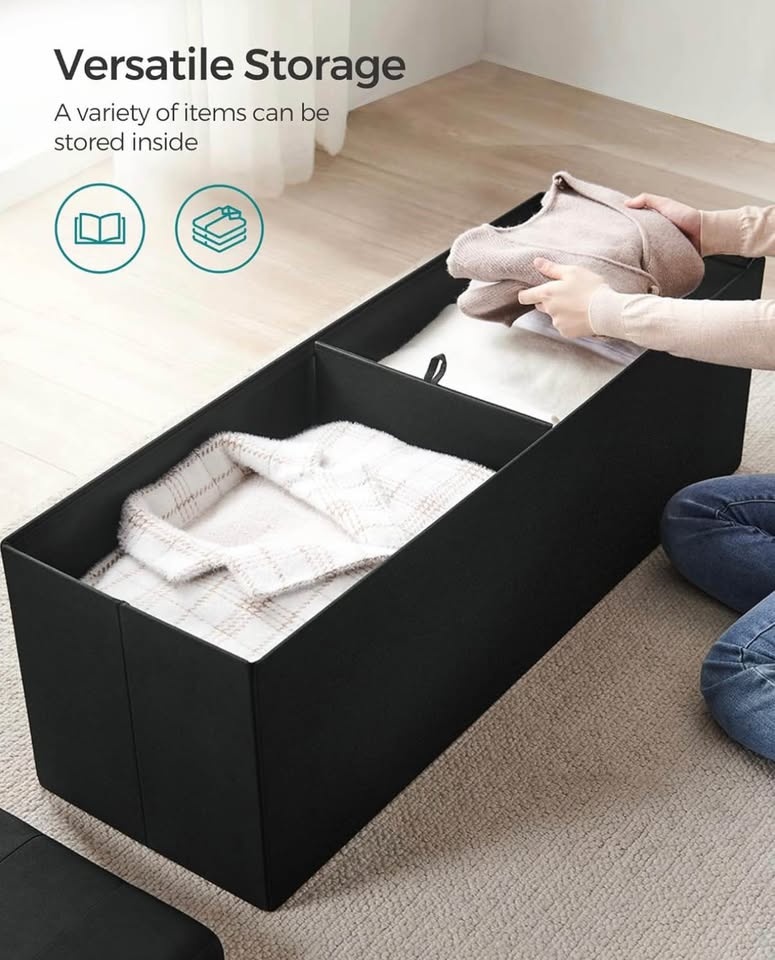 ✨ NEW — SONGMICS Folding Storage Ottoman Bench | Ink Black ✨