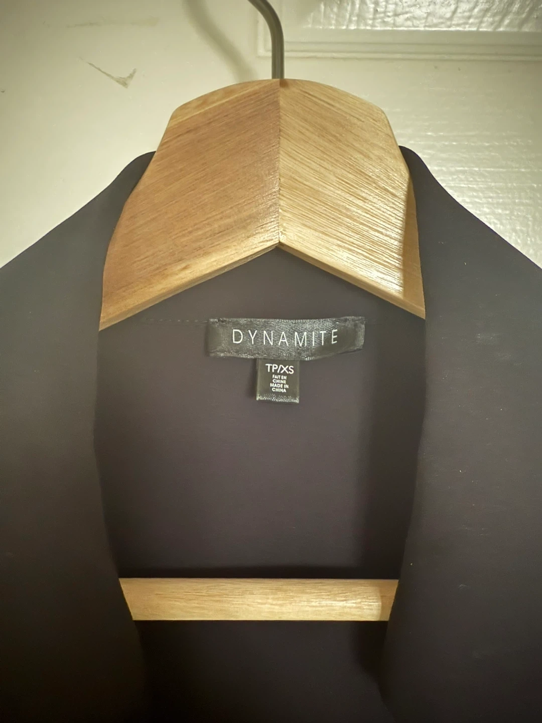 Selling a cute black mini dress from Dynamite! It's a size XS and in great condition. Perfect for a night out or a special occasion. The dress features a stylish design with a flattering fit. It's made from a comfortable material that feels great on the skin