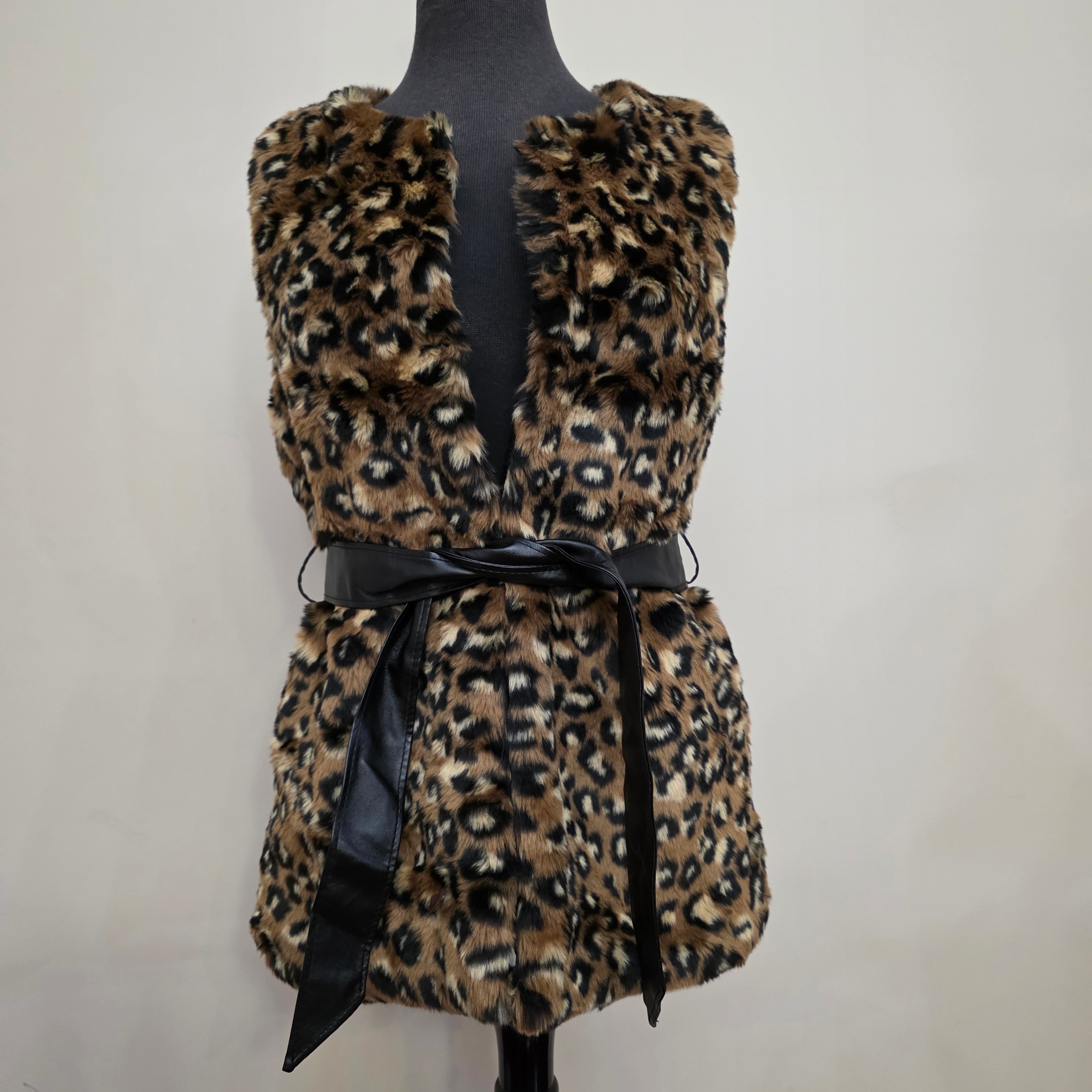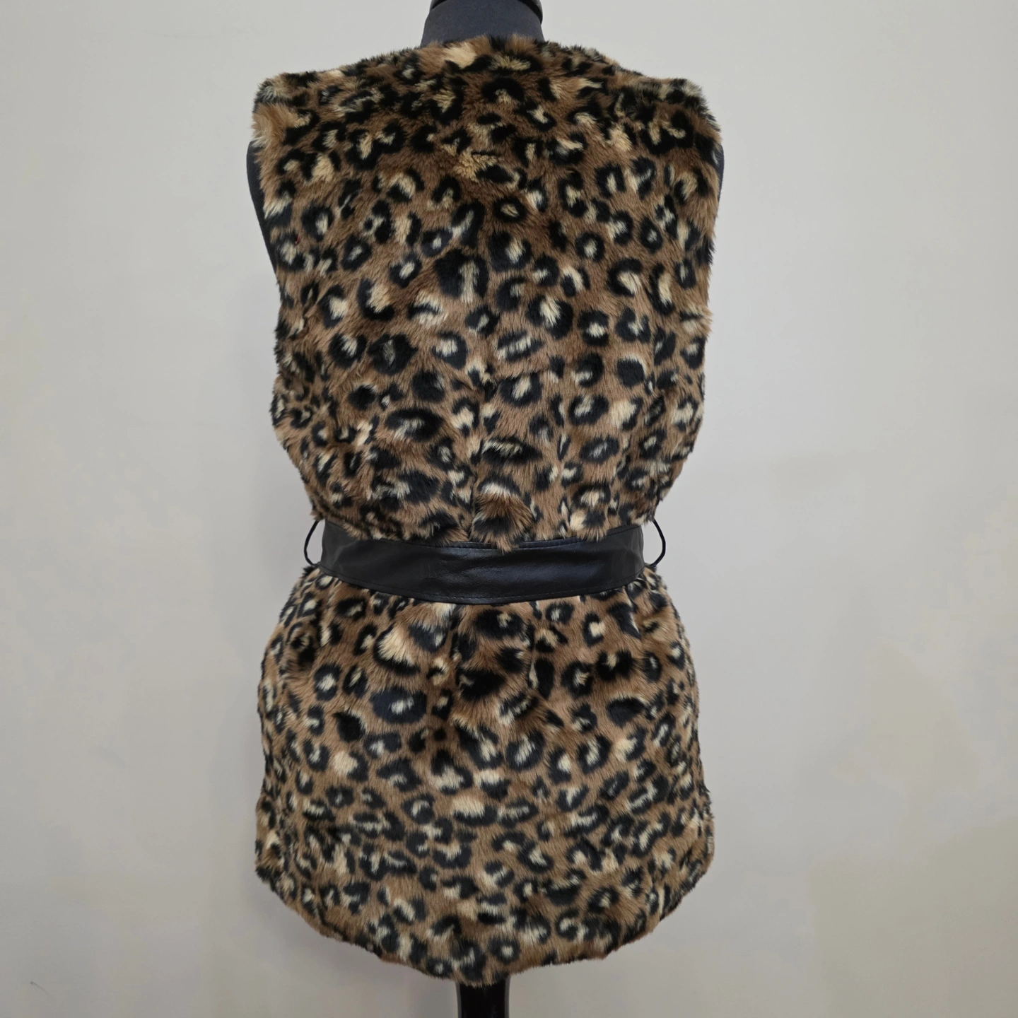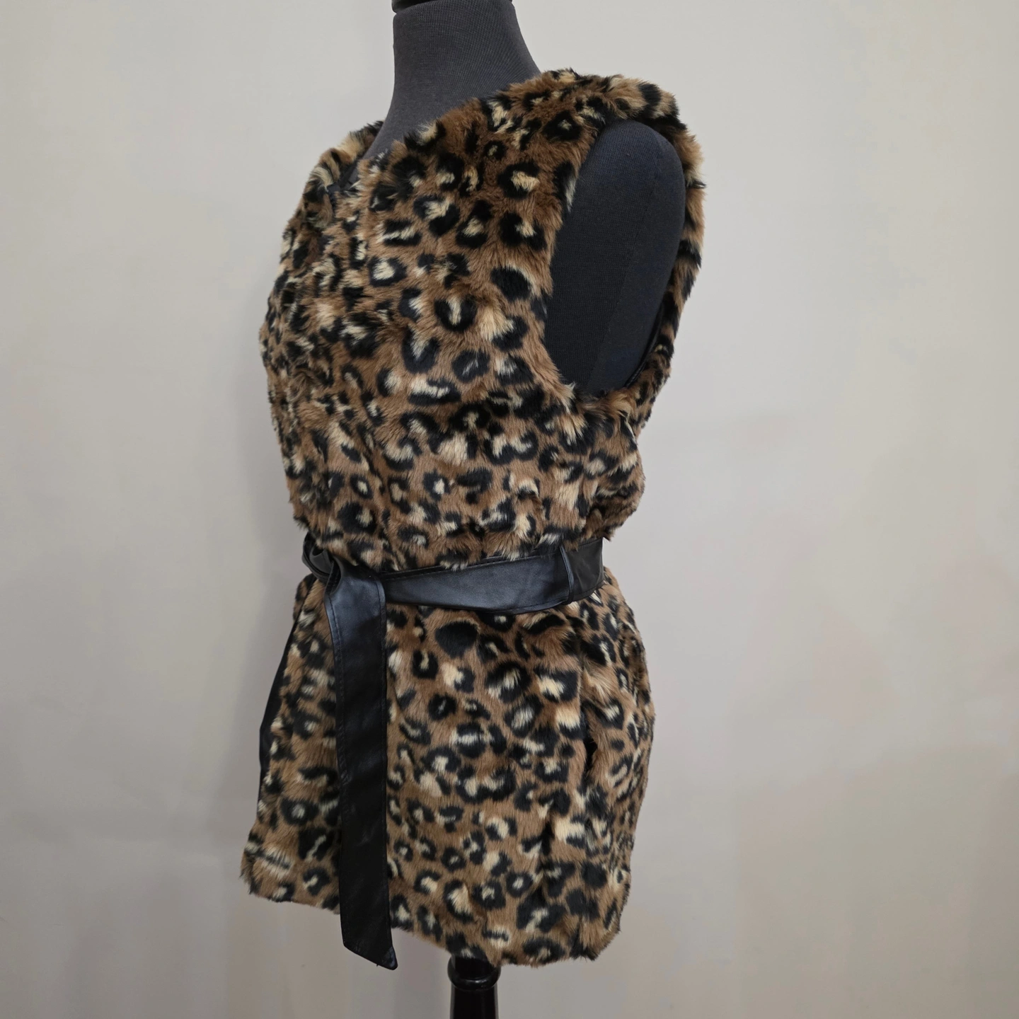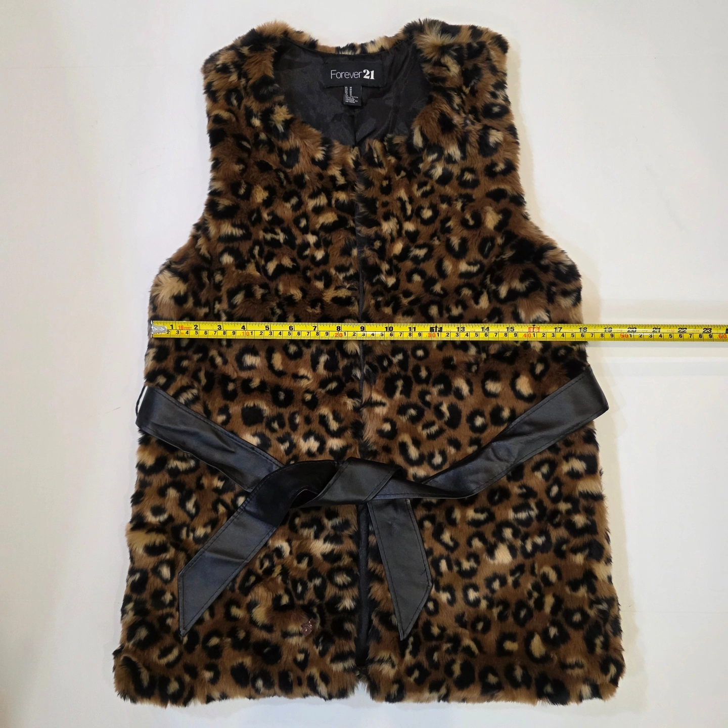 Forever 21 Leopard Print Faux Fur Vest with Black Belt Women’s Medium – Only $10