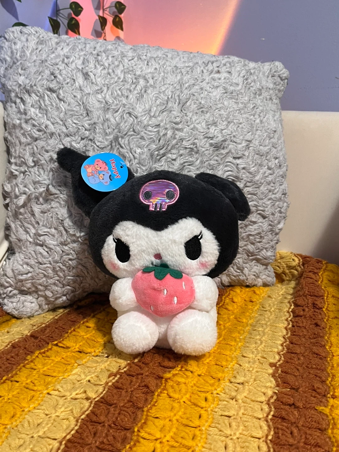 Super cute Kuromi plushie holding a strawberry! It's in great condition and ready for a new home.