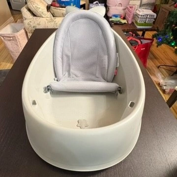 Like new Skip Hop Moby baby bathtub. Cleaned and never used. From a smoke-free, pet-friendly home—items stored separately with best efforts to remove fur.