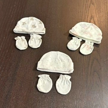 FEATURES: 3 hats and 3 no-scratch mittens.