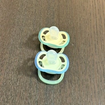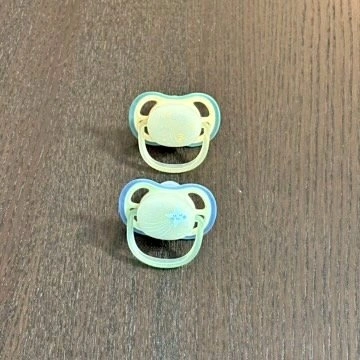 • FEATURES: Air holes allow baby's skin to breathe. BPA-free. Orthodontic. Glow-in-the-dark.