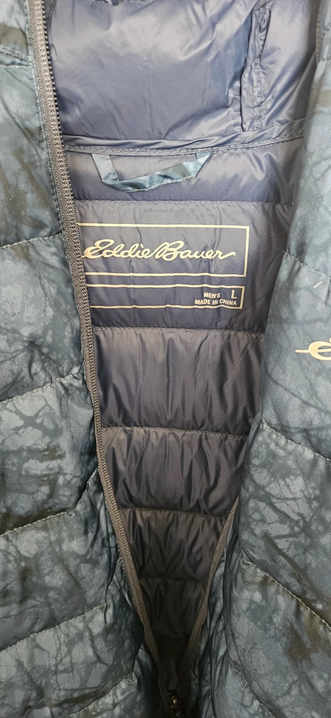 Eddie Bauer men's size large down jacket in great condition! It's a lightweight and comfortable jacket, perfect for layering or wearing on its own during milder weather and during hiking in the winter!