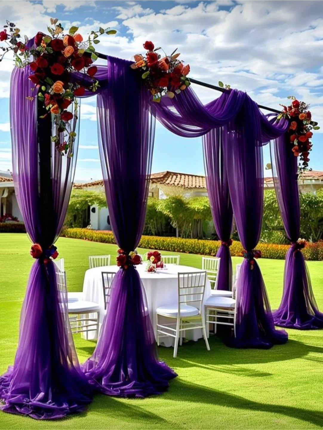 1pc Deep Purple Sheer Fabric Wedding Arch - Large Romantic Voile Decor, Suitable For Ceremony, Reception And Party Decorations, Perfect Choice For Wedding Season And Party Decorations