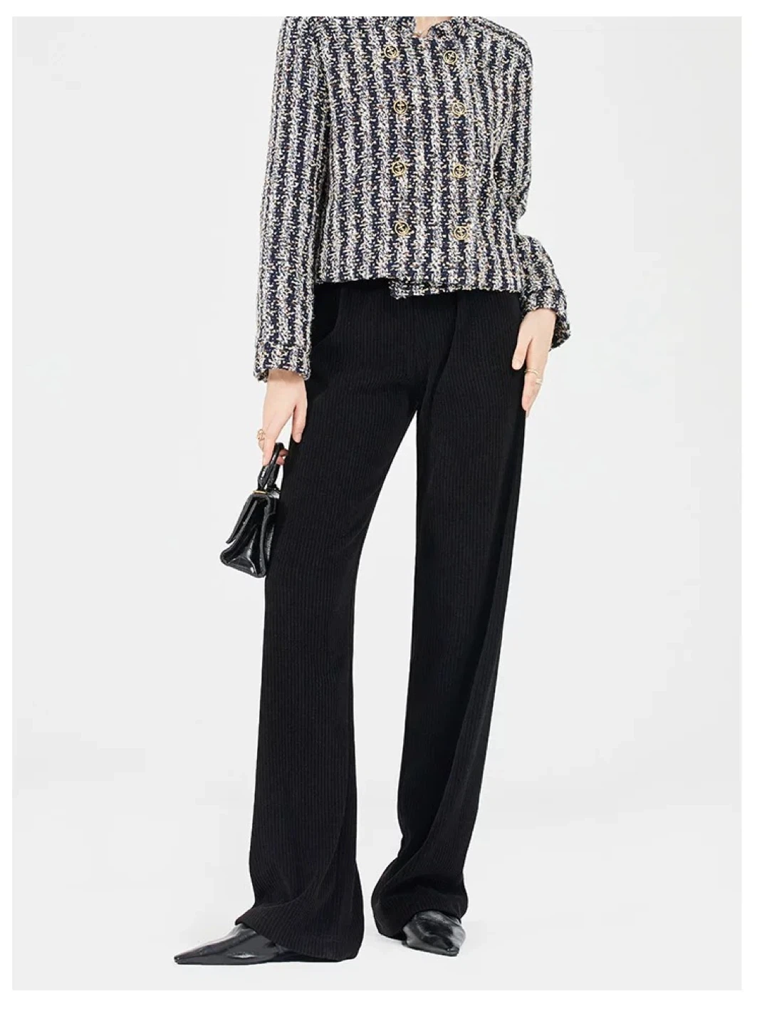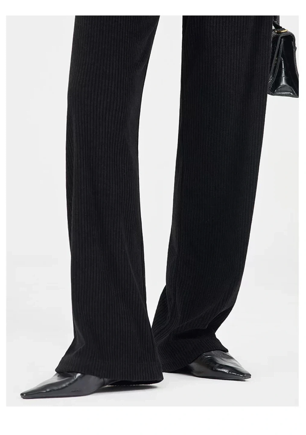 Black Ribbed Wide Leg Trousers