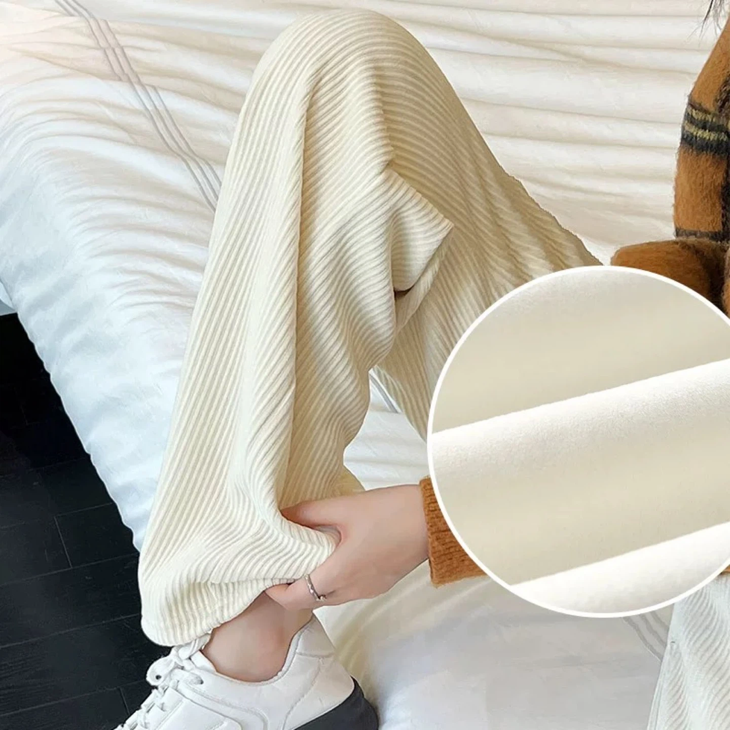 Selling a pair of black ribbed wide-leg trousers. They're in great condition and would make a stylish addition to your wardrobe! The ribbed texture adds a unique touch to these classic trousers. Perfect for dressing up or down!