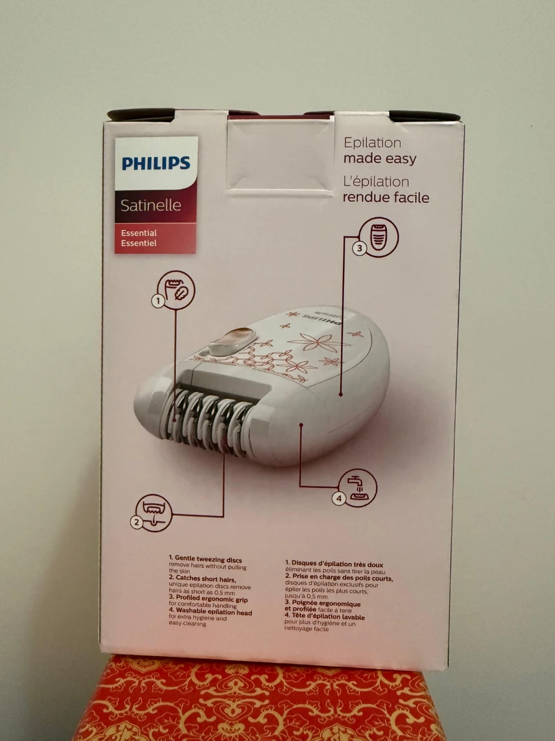 Selling a Philips Satinelle Essential epilator! It's in new condition. This compact epilator is designed for legs and provides easy epilation. It features gentle tweezing discs that remove hair without pulling. The epilator catches short hairs as short as 0.5 mm and has an ergonomic grip for comfortable handling. The washable epilation head ensures hygiene and easy cleaning