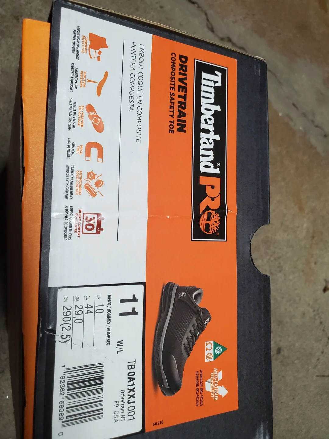 Selling a pair of Timberland PRO Drivetrain Composite Safety Toe shoes in size 11. They feature anti-fatigue technology and come with the original box