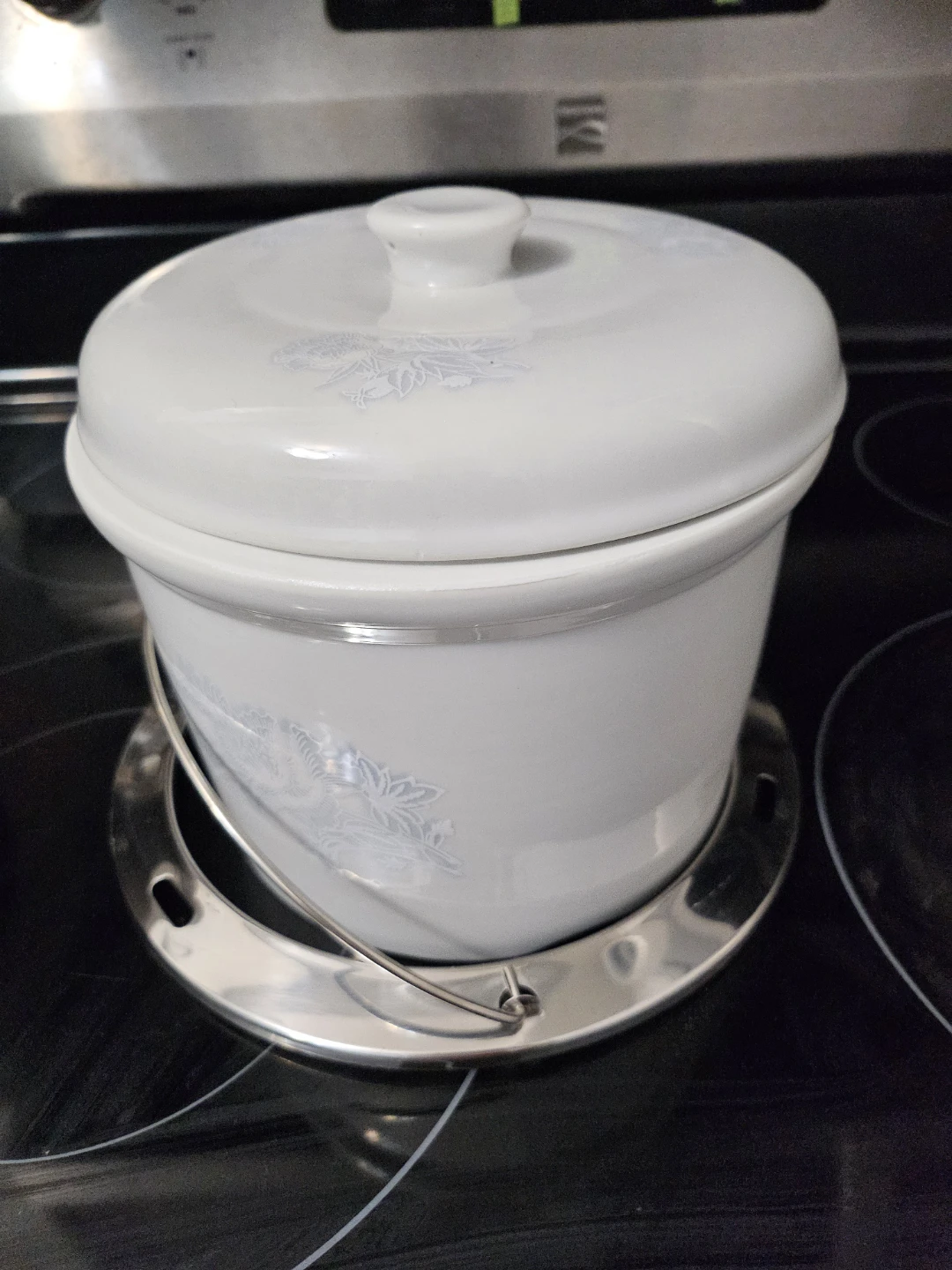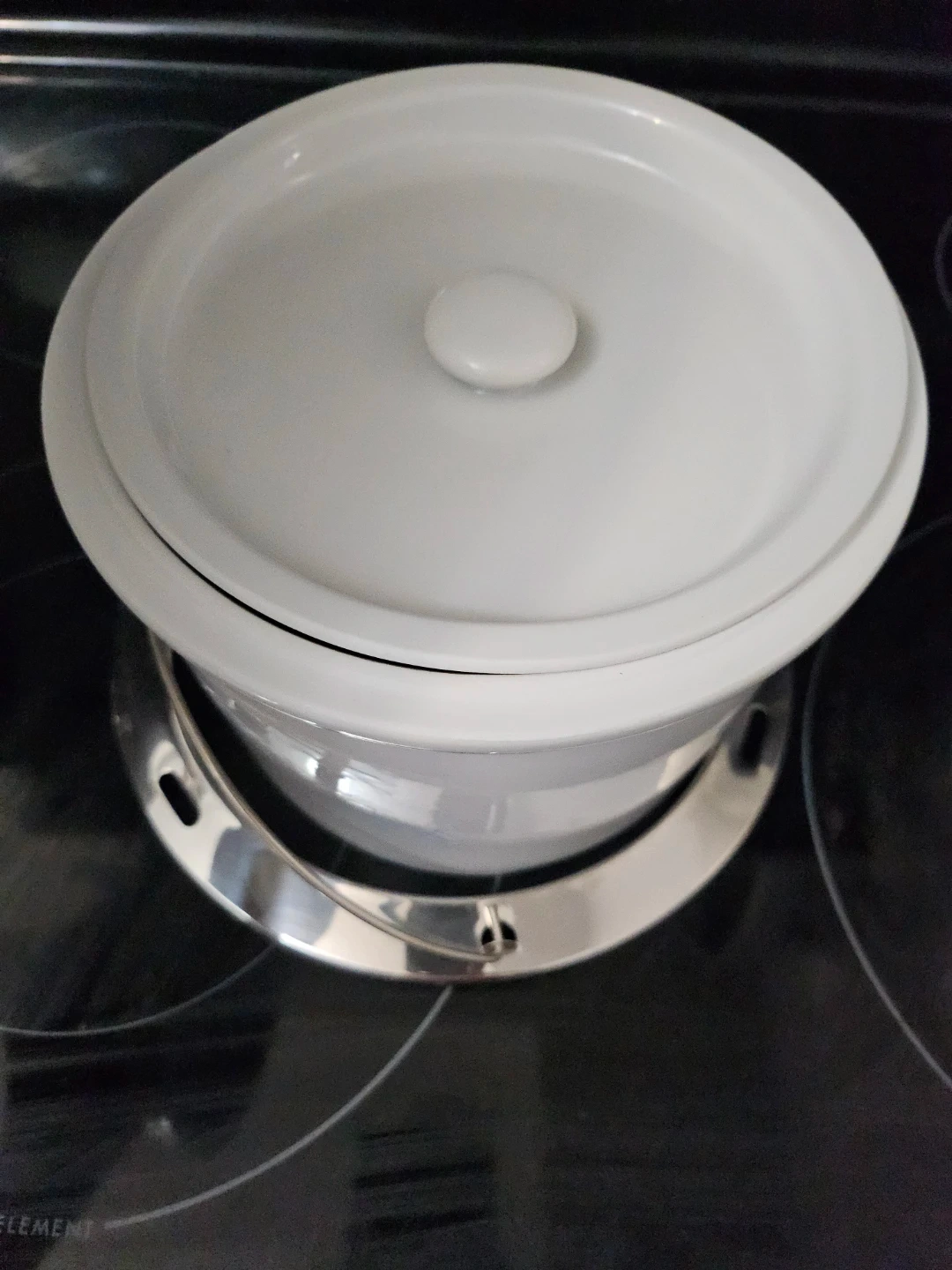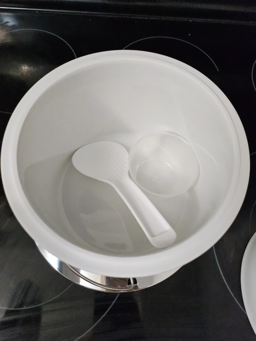 Selling a vintage Corningware rice cooker! It comes with a spoon and a small measuring cup. It's in good condition and ready to make some delicious rice!