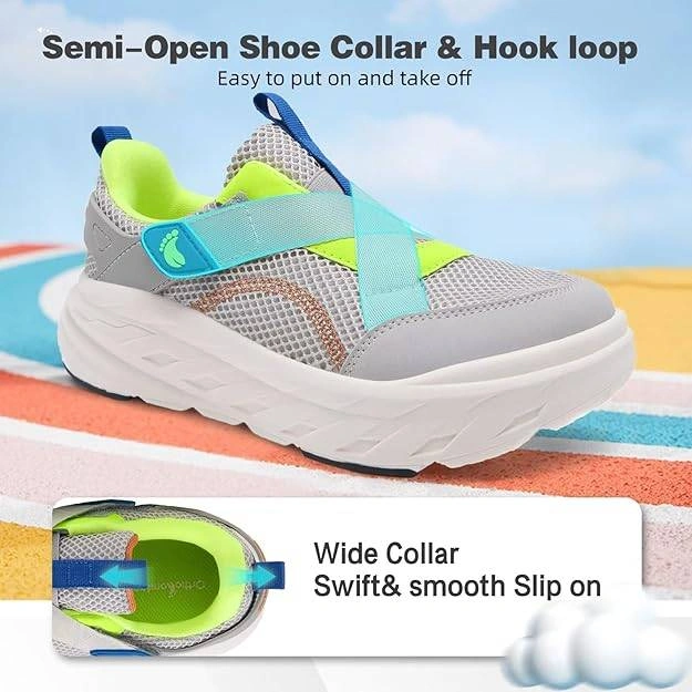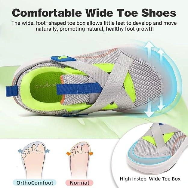 These OrthoComfoot kids orthopedic shoes are designed with arch support and a wide toe box that allows for natural foot movement and growth, reducing pressure and discomfort.