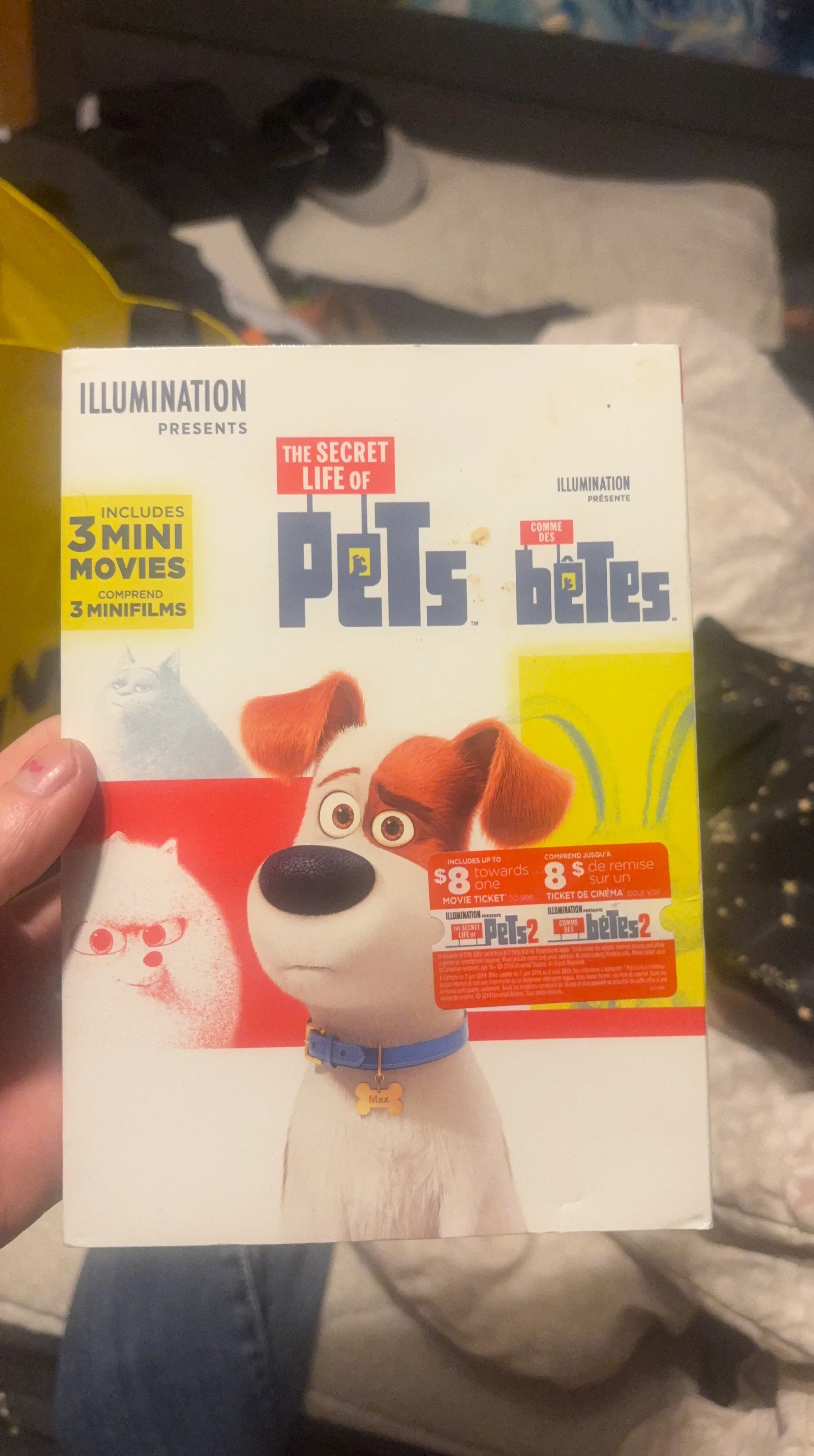 Selling The Secret Life of Pets DVD, which includes 3 mini movies! It also includes up to $8 towards one movie ticket to see Pets 2