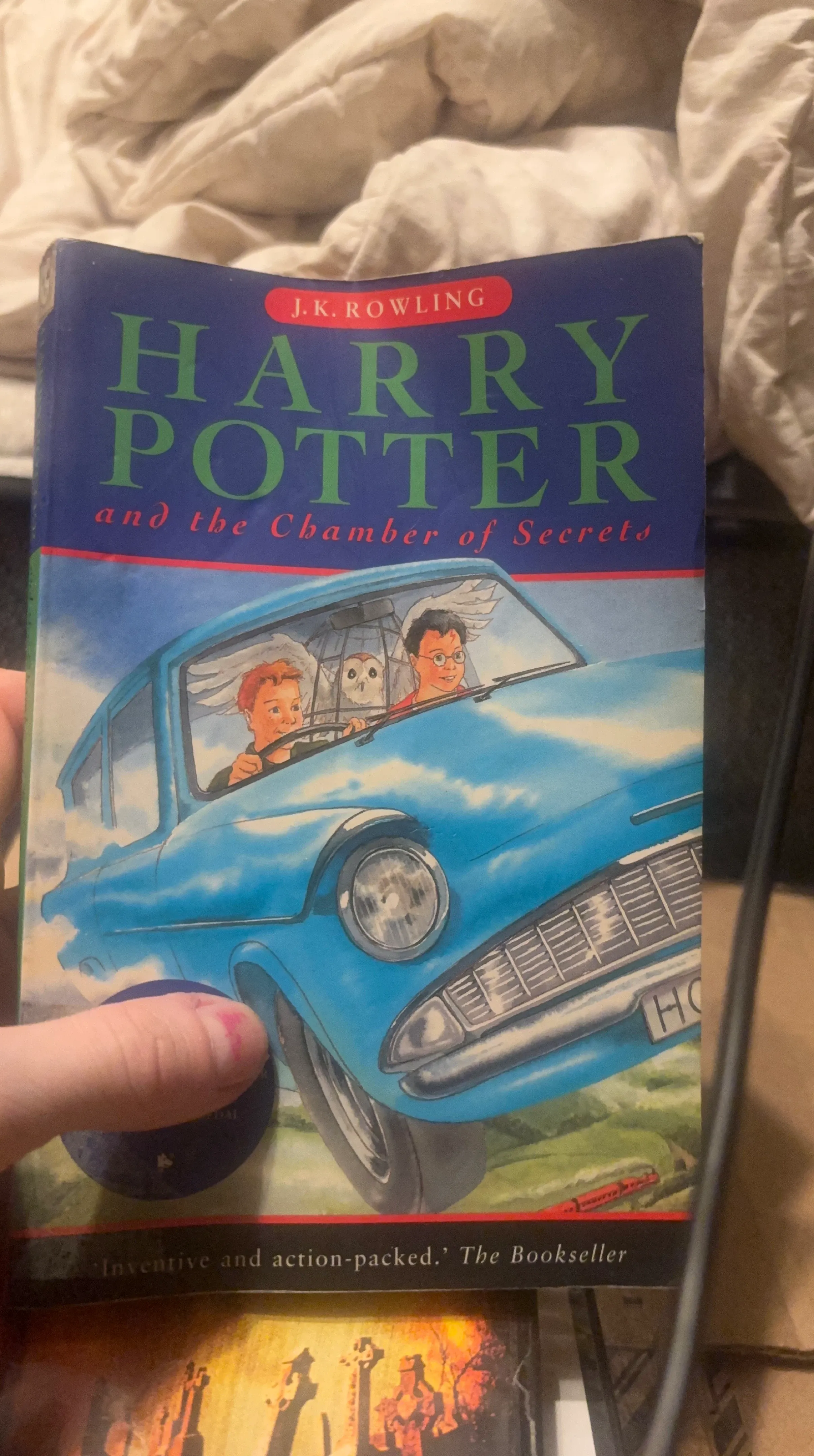 Selling a copy of Harry Potter and the Chamber of Secrets by J.K. Rowling! It's an inventive and action-packed story