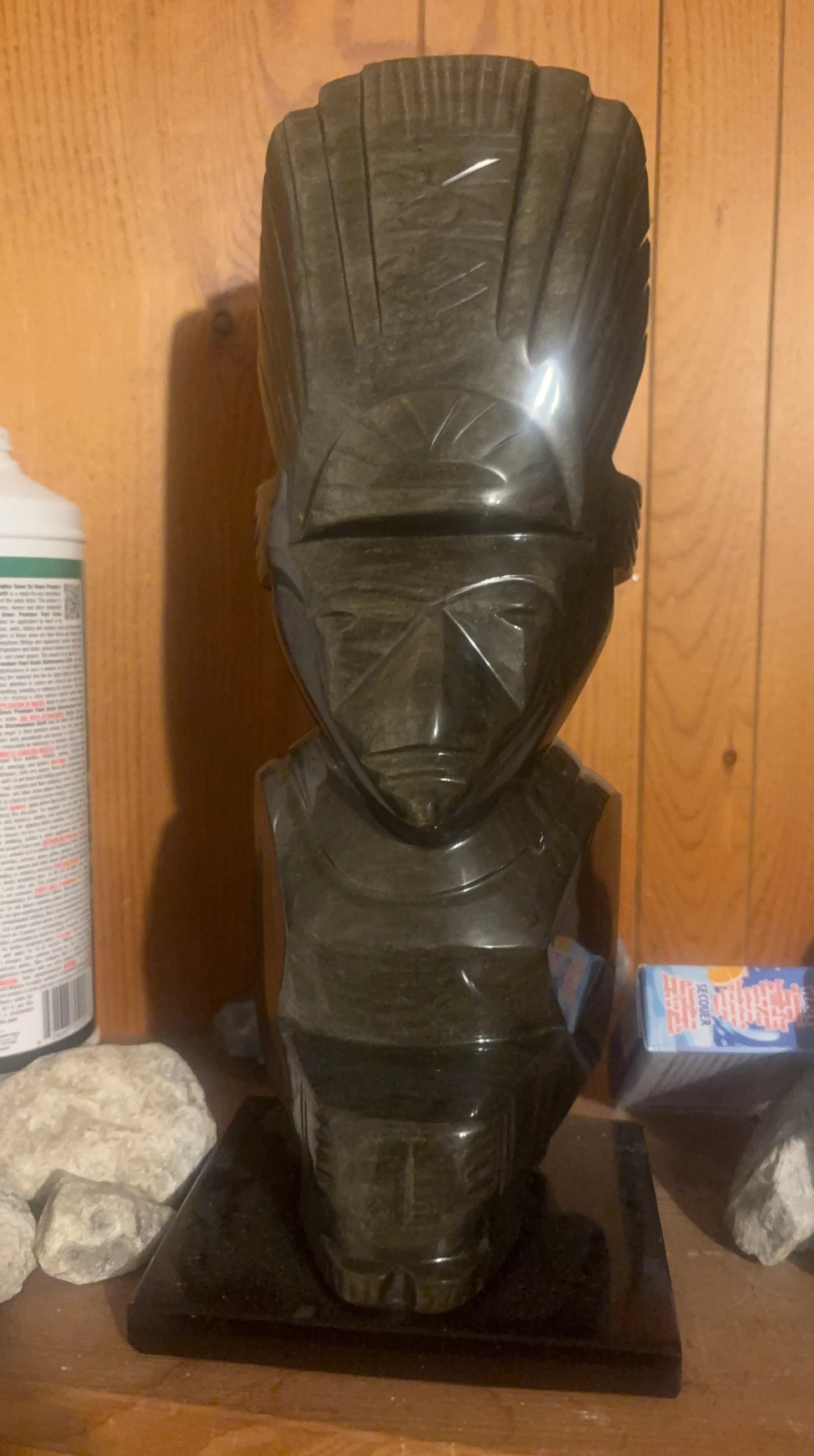 This is a beautiful gold sheen obsidian statue that is a Mexican god. It would look great in any home! It’s great for protection of the home. Perfect house warming gift or for your own home
