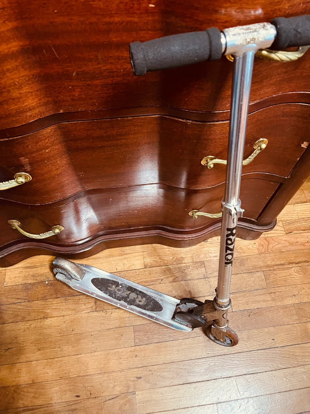 Selling a used Razor scooter. It shows signs of wear and tear, but is still functional.