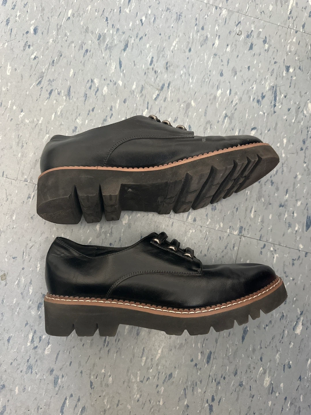 Selling a pair of Patrizia Bonfanti black leather oxfords. They're in good condition and have a stylish, chunky sole. Perfect for adding a bit of edge to your outfit!